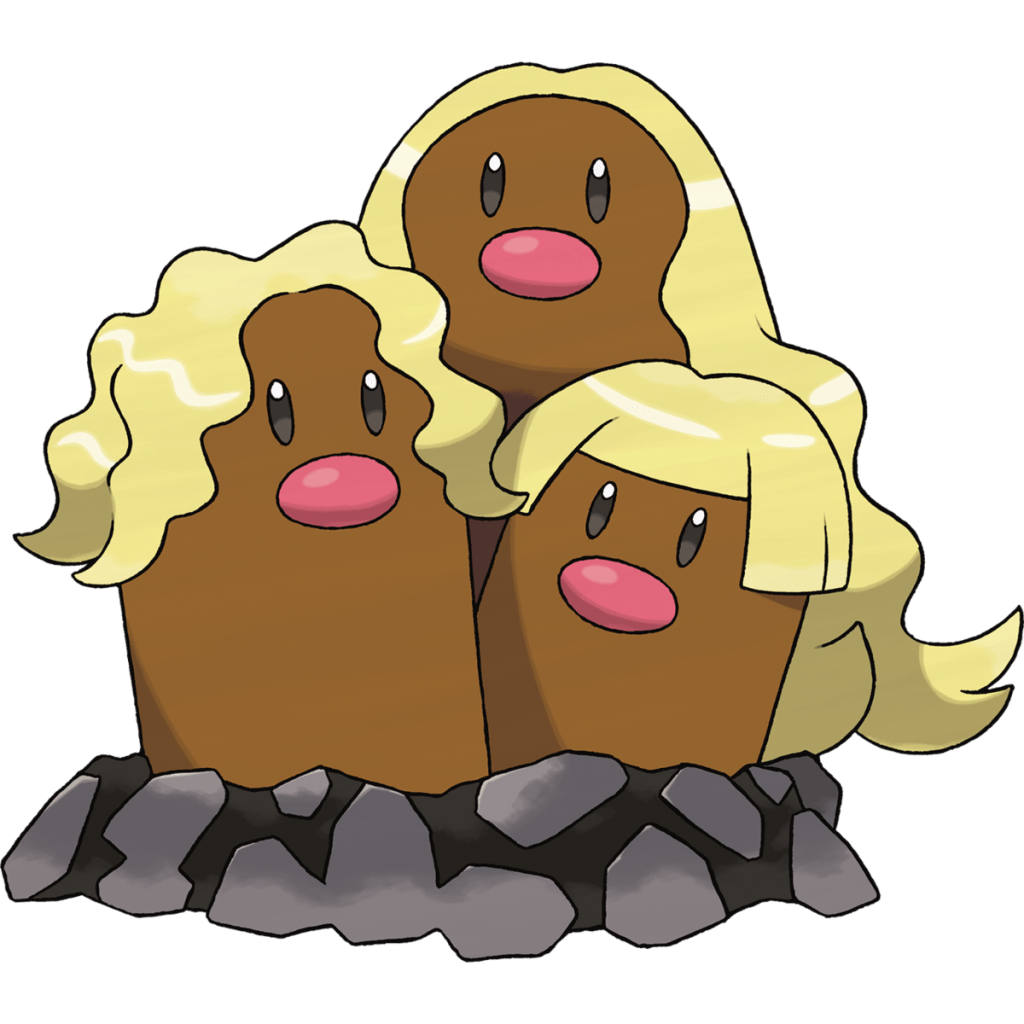 Although the Pokédex says Alolan Dugtrio are “not very fast,” they’re only a little slower than the lightning speed of Kantonian Dugtrio, trading away a few points for some extra physical defence. In most other respects, the two forms are pretty similar. The Alolan form, of course, is a Ground/Steel dual-type, which comes with a much greater number of resistances, and it learns several Steel attacks to match, most importantly Iron Head, but there aren’t really any other significant differences in their movepools. So Alolan Dugtrio is just regular Dugtrio, only better because of all those resistances, right? Well… no. See, Dugtrio isn’t a particularly impressive Pokémon on its stats alone. People use Dugtrio for its ability, Arena Trap, which makes it impossible for most opponents to switch out while Dugtrio is in play. If the trapped Pokémon doesn’t have good physical defence or resistance to Earthquake, it can’t run away and there’s a good chance Dugtrio can then murder it for you. It’s an extremely powerful ability that has let Dugtrio punch well above its negligible weight since the days of Fire Red and Leaf Green. And Alolan Dugtrio… doesn’t get it. Which sucks for Alolan Dugtrio. Instead it gets its own unique ability, Tangling Hair, which reduces the speed of any Pokémon that hits it at close range, and that’s… kind of nice, I guess, but Dugtrio doesn’t have a lot of need for it, since it’s so fast anyway. There’s a clear balance argument to this, because the Kantonian Dugtrio has always been very good and probably always will be, and the thought of giving it Steel-type resistances is frankly alarming. Besides, Alolan Dugtrio can still take Sand Force and be okay. It’s just a shame for it to be so clearly overshadowed by its cousin because it’s missing the thing that, well, makes Dugtrio Dugtrio.