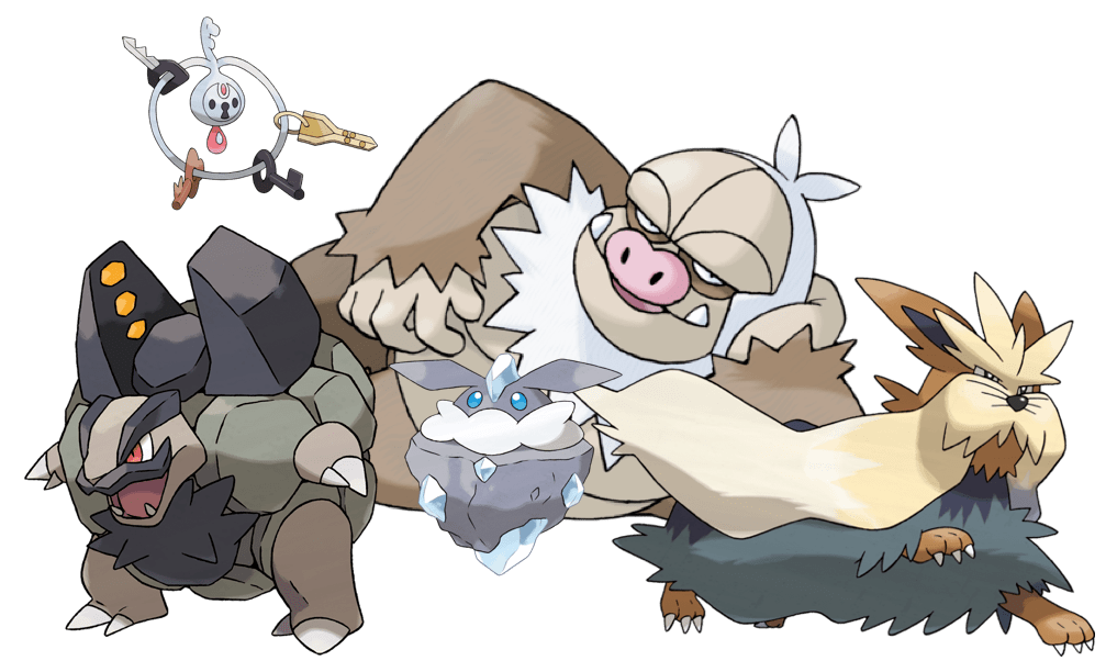 Other Pokémon: Carbink, Slaking, Klefki, Stoutland, Golem (Alolan)