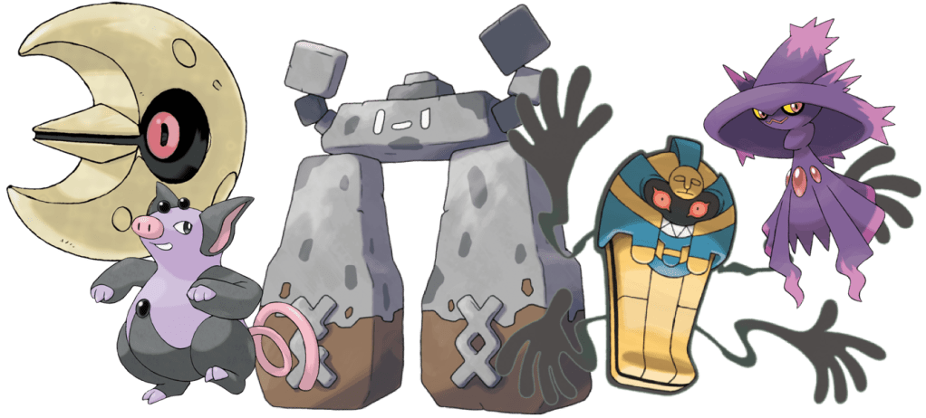 Other Pokémon: Lunatone, Stonjourner, Grumpig, Mismagius, Cofagrigus