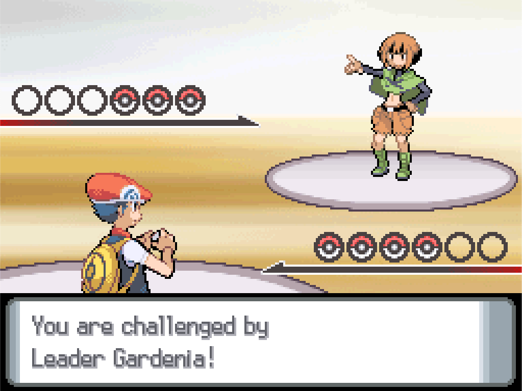 Gardenia’s Pokémon are much higher in level than her lieutenants’, and easily a match for mine. But a Cherubi is still a Cherubi…