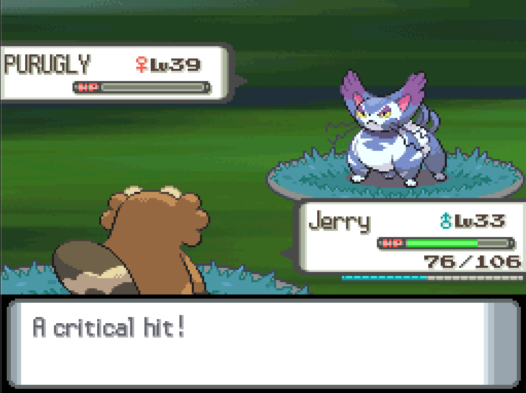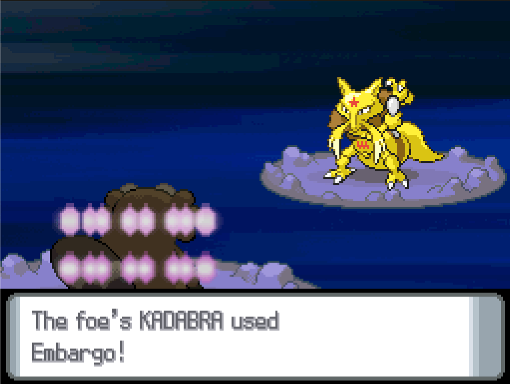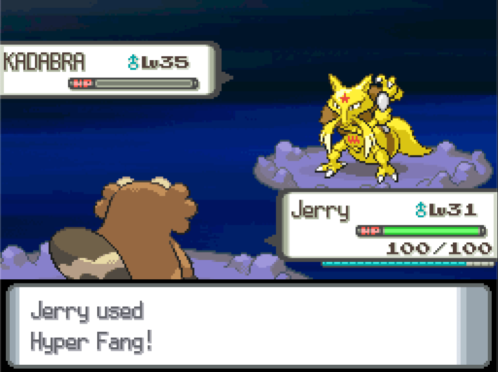 I have to use Jerry next because my party order is fixed by the Ace of Swords, and you’d think Shockwave would work well on him too, but instead Kadabra fµ¢£s around with Embargo for some reason and then Jerry just ruthlessly murders it with one Hyper Fang (god I’ve missed STAB attacks).
