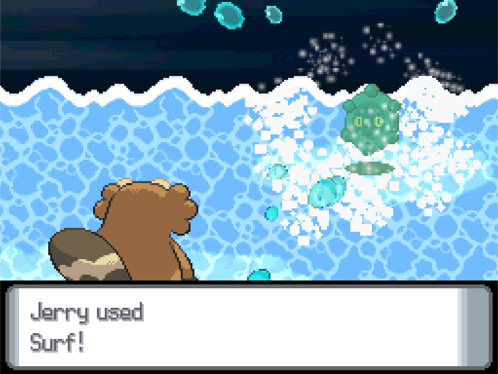 And finally there’s this Bronzor, who takes several rounds of Surf to bring down, but hey, we’ve firmly established that Bronzor has zero offensive presence, so time is not really of the essence.