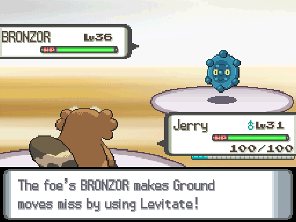 And here we are! Byron’s Pokémon are Bronzor, Steelix and Bastiodon. King Louie’s Grass Knot should be a decent move against the latter two, and Jerry’s Dig should wreck Bastiodon if he lasts that long into the battle (or, well, it would if he weren’t such a low level, but… ah, it’s probably fine). Bronzor doesn’t have much in the way of offensive power but can be a really tough nut to crack – and we’ve seen with Fantina’s Drifblim that tough nuts can provoke some severe allergic reactions.