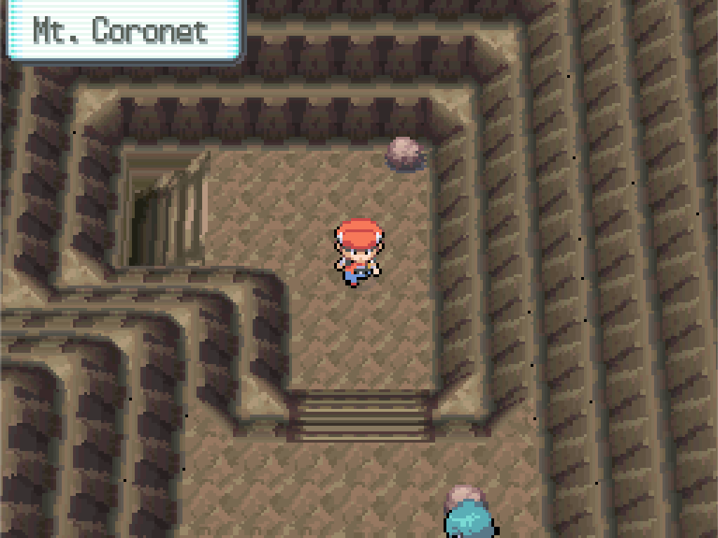 There’s a passage accessible from the east slope that leads back down and northward through the mountain, eventually connecting back up with the Celestic Town entrance, but it’s guarded by Team Galactic grunts. You can’t get up here from Celestic Town either; there’s a boulder that you need to move with Strength, but it can only go one way.