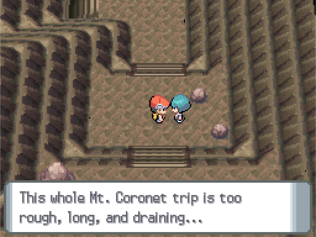 We’ve made it to the upper slopes of Mount Coronet (and another great track carried by that Sinnohan piano). The wild Pokémon out here are even more powerful than before, getting up to level 40, and I don’t even think this is the end; there are more cave segments to get through before we reach the Spear Pillar. I’ve blown all the money I had left on revives and Moomoo Milk to stay up here as long as I can and keep training on the way. Time to draw.