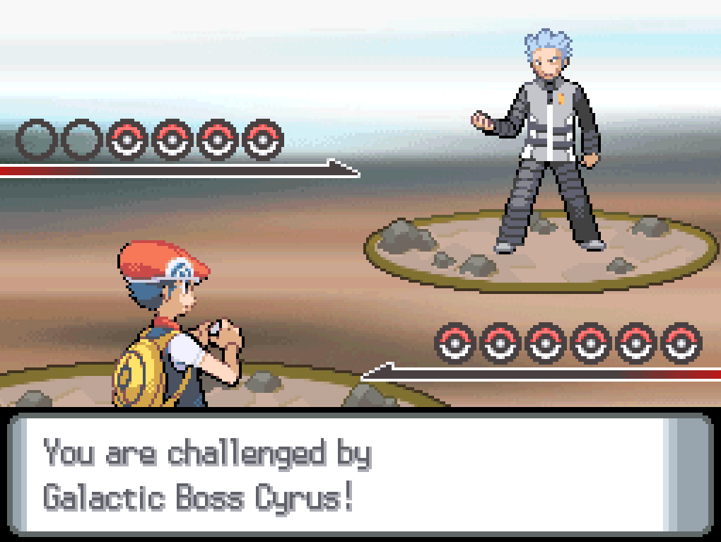 oh, $#!t, no breaks, huh? No wonder the game lets Barriam heal us; going straight into the fight with Cyrus without even a chance to revive our fainted Pokémon after that double battle would be brutal. To be honest, even at full strength and with six Pokémon to his four, I don’t know if I can beat him; the level gaps here are devastating.