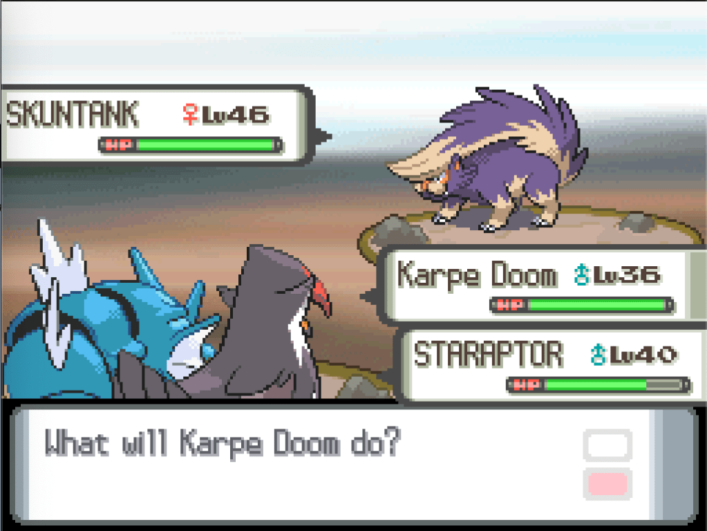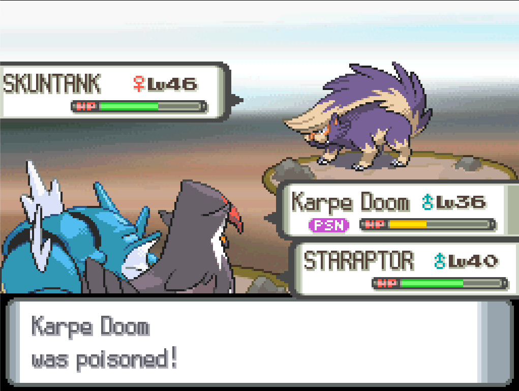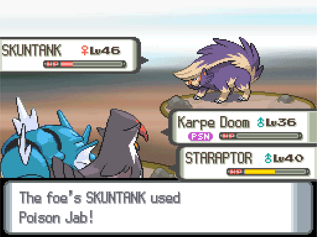 Skuntank unfortunately has really high base HP, giving this particular one an HP total of at least 120 (3 Dragon Rages), as well as a nasty Poison Jab attack.