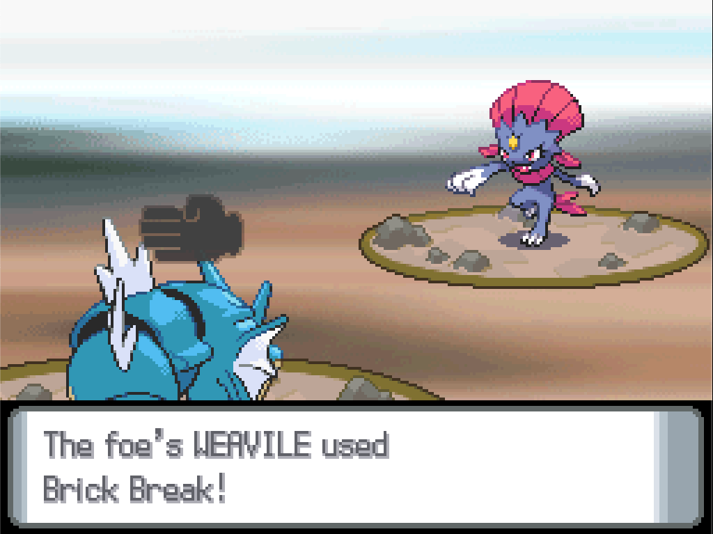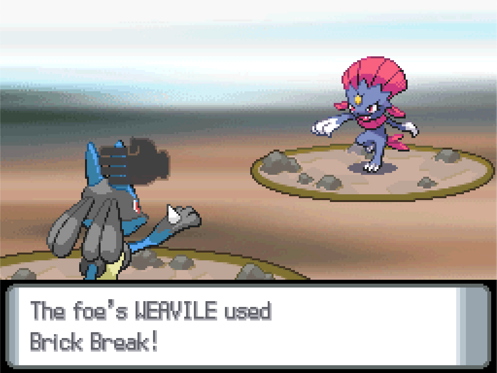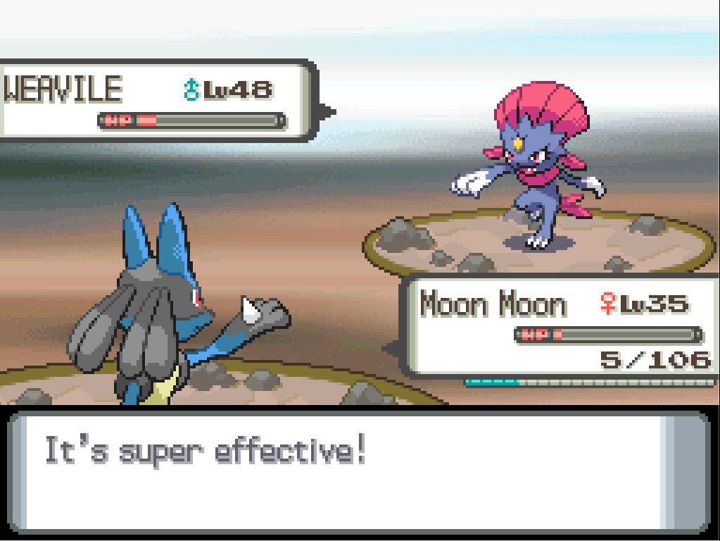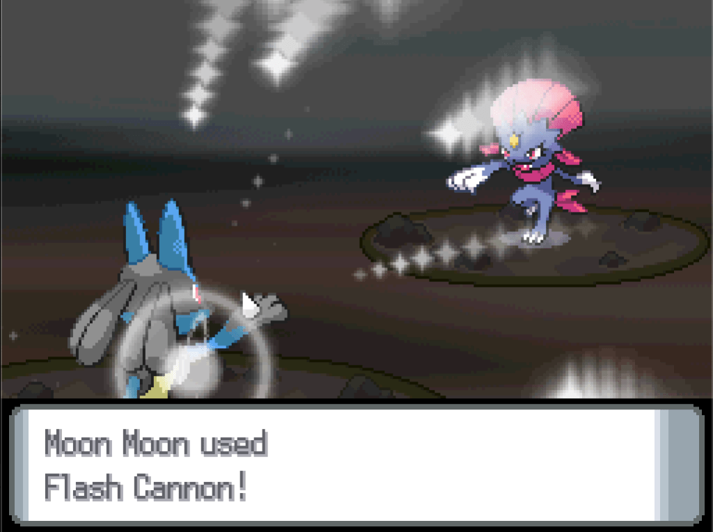 I’m pretty sure Cyrus’ Weavile has Brick Break, but I can hope that he’ll do something stupid here and not just immediately murder Moon Moon.