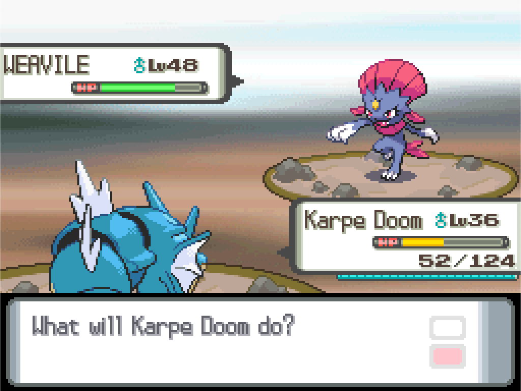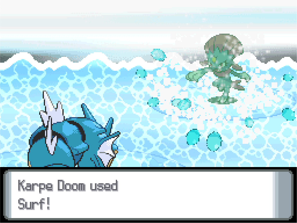 also, uh, Karpe Doom is fresh out of PP for Dragon Rage, and Surf will do basically nothing to Palkia
