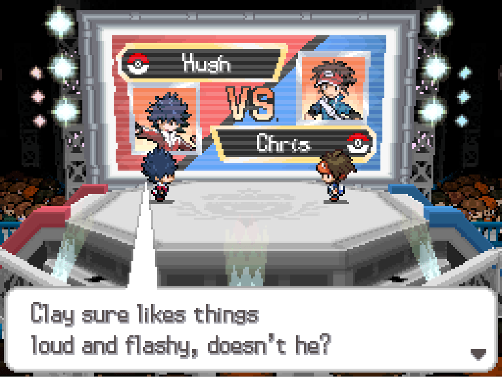 Before we can move on, Clay wants the player character and harmless, adorable little Hugh to participate in a tournament to build some buzz for his new tournament venue in the south of Driftveil City.