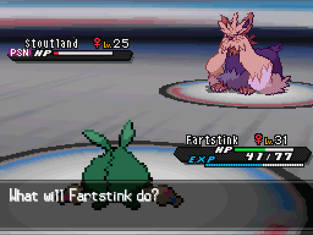 I, uh… might just pop back to the Driftveil market to buy another dozen bottles of Moomoo Milk. And maybe a couple of Revives as well, since I have a Champion who’s immune to petrification; I can switch Fartstink in to tank anything that looks like it might be deadly.