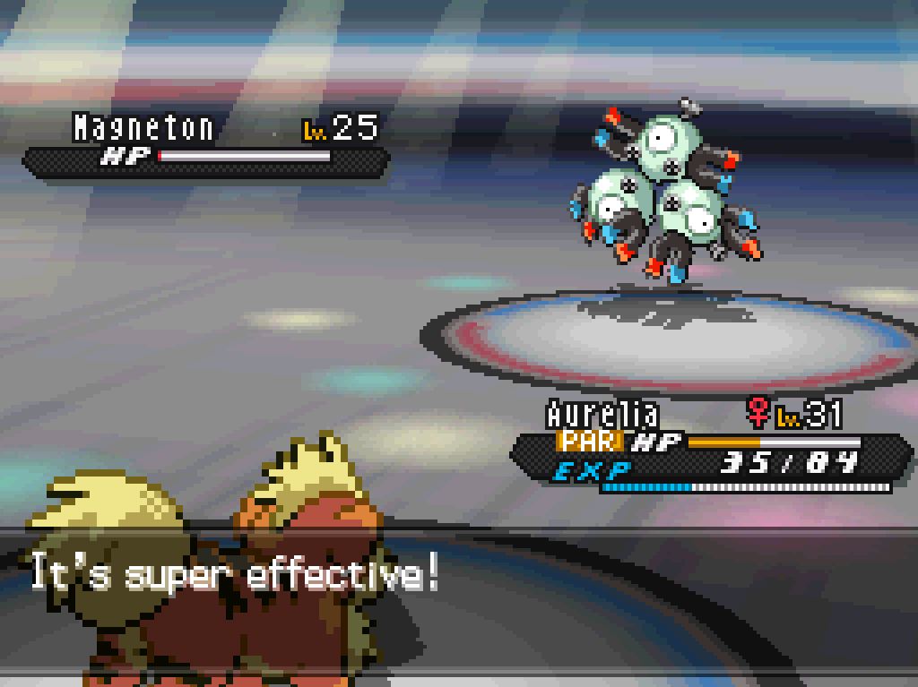 Colress’s Pokémon all have pretty big advantages against Fartstink, and Aurelia doesn’t fare too well after switching into a Thundershock critical hit from Magneton, but Patracia has no trouble cleaning up with Crunch and Dig.