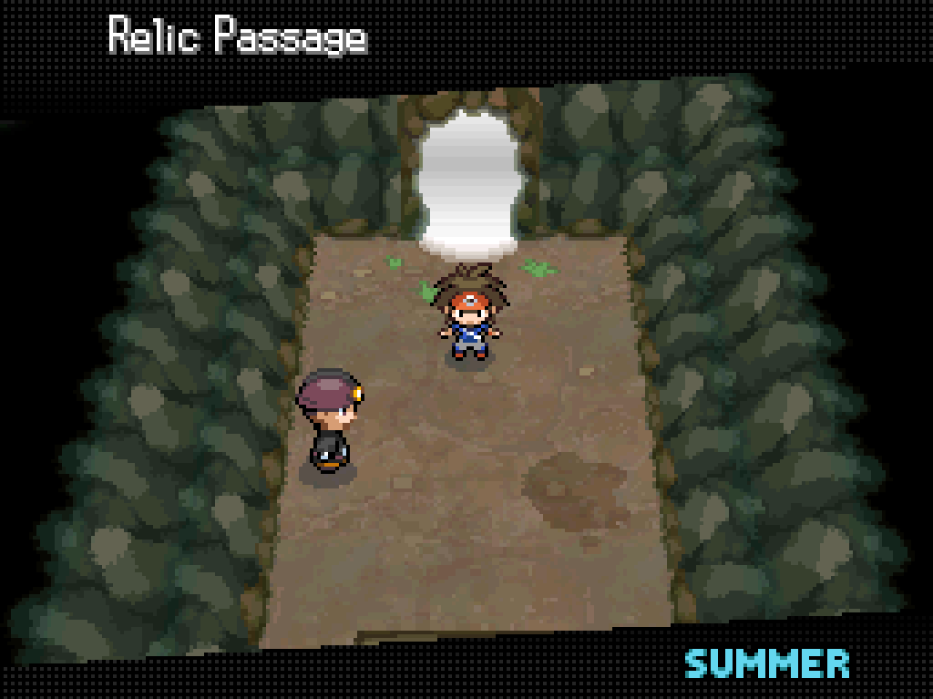 Technically we’ve been to the Relic Passage before, but this end has different encounter tables with much higher-level Pokémon, as well as more trainers, and it’s separated by a pretty big chunk of the story, and in cases like that I usually opt to draw another card.