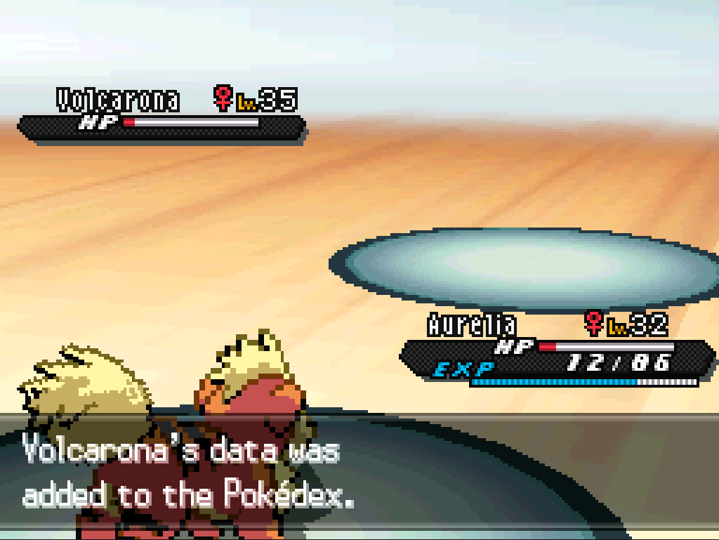 Static encounter Pokémon are always fair game in a Kingslocke; there are special restrictions on legendary Pokémon, but Volcarona is not quite legendary. One of our party must now prove that they are worthy to stand in the presence of the Sun.