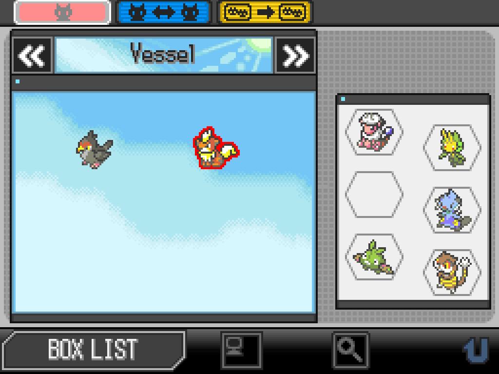 King – Vessel: Choose and box one member of your current team; you may replace it with a new Pokémon of your choice from this area OR free one petrified Pokémon. The boxed team member is placed in the Vessel and cannot be returned to your active party, not even by the effects of other cards. If there are ever four Pokémon in the Vessel, those Pokémon immediately become your new party (your other two party slots remain “free” and can be filled with any other Pokémon that are currently legal).