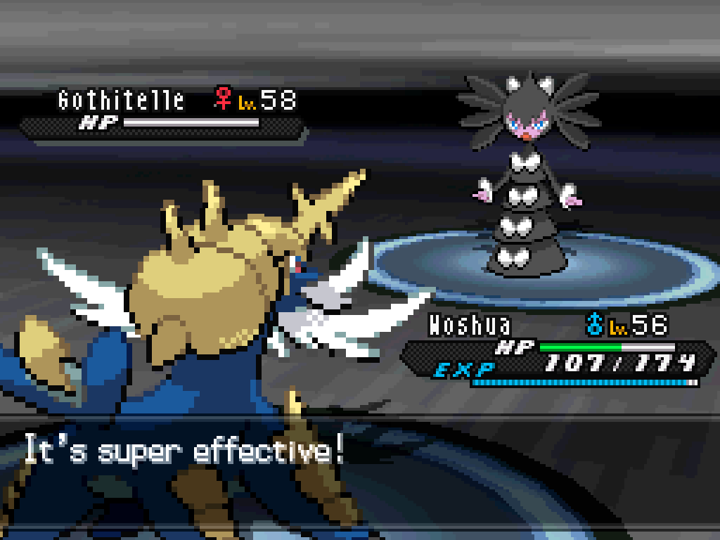 Generation V is the first generation to allow you to face the Elite Four in any order.  I think we’re reasonably well equipped to face Caitlin’s Psychic-types, with an extra little toy I’ve just grabbed for Woshua from the move reminder, so I’m going to try starting with her.
