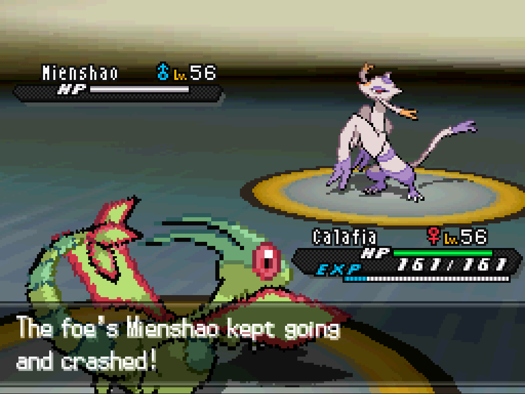 Artemis got straight-up murdered by Mienshao’s Bounce, but then when Calafia came in, Mienshao just flung itself into a wall and died.