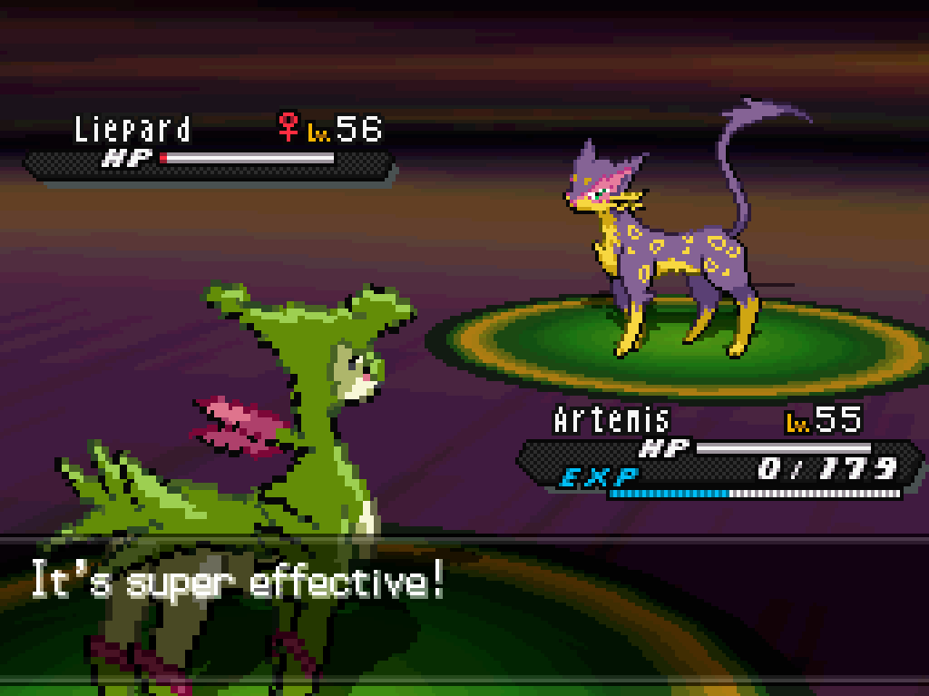 I was really hoping Artemis would do well with Swords Dance, but unfortunately Liepard has a Flying attack and Strength wasn’t quite strong enough to one-shot it even after a Swords Dance.