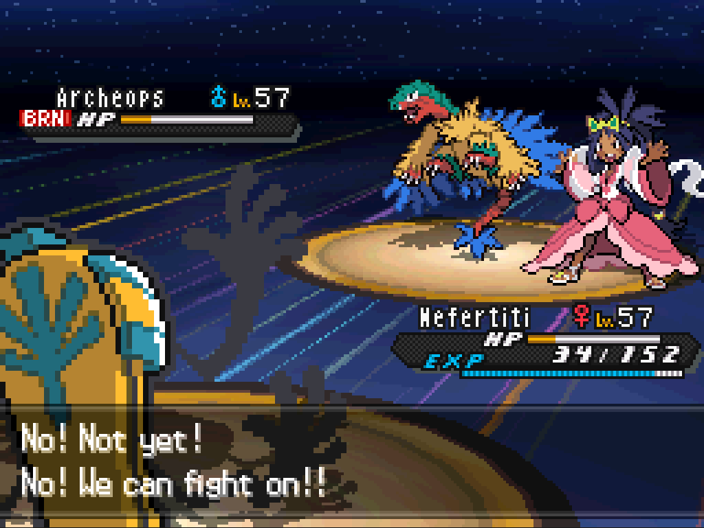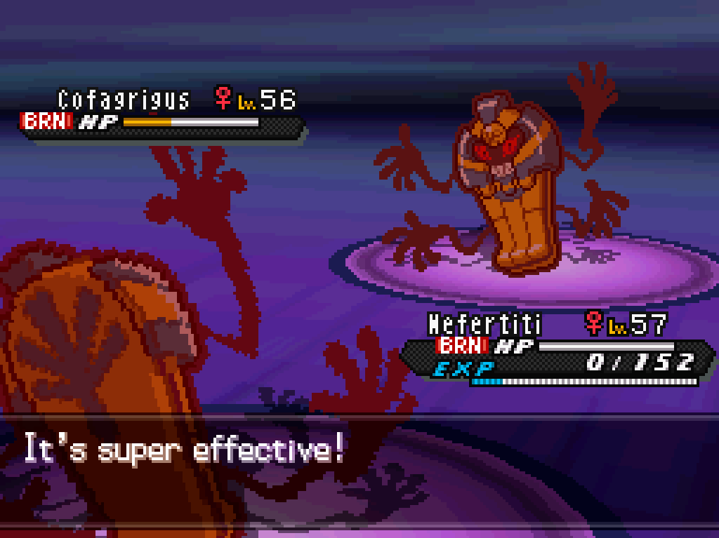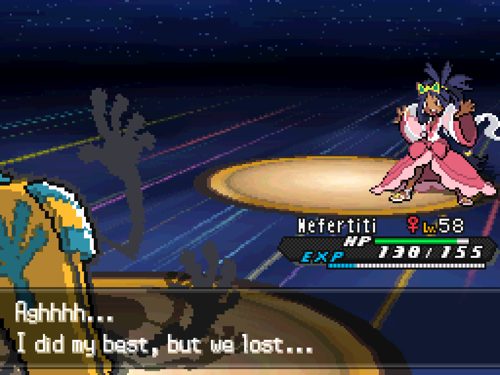 (Nefertiti has basically just soloed Iris.  This leaves her in a position to claim spiritual dominion over the entire Unova Region and usher in a new age of darkness and sacrifice.  Frankly, she thinks she deserves a little terrified worship and servitude after being so bored in that tomb for so long.  Someone had best bring her some of those… whatever those snacks were that she used to love when she was alive.  She doesn’t know, she’s far too important to be expected to remember these things herself.  Quickly now, before she starts devouring souls instead!)