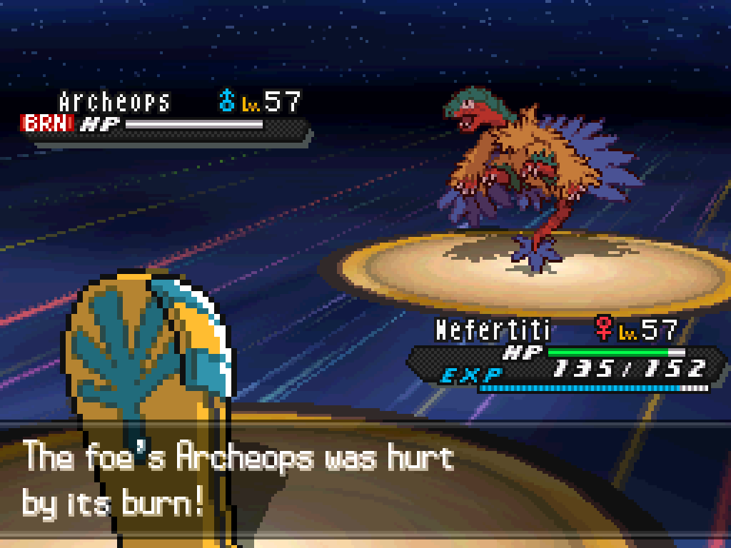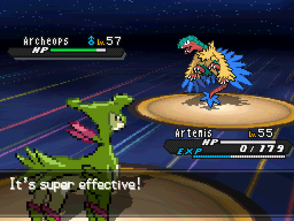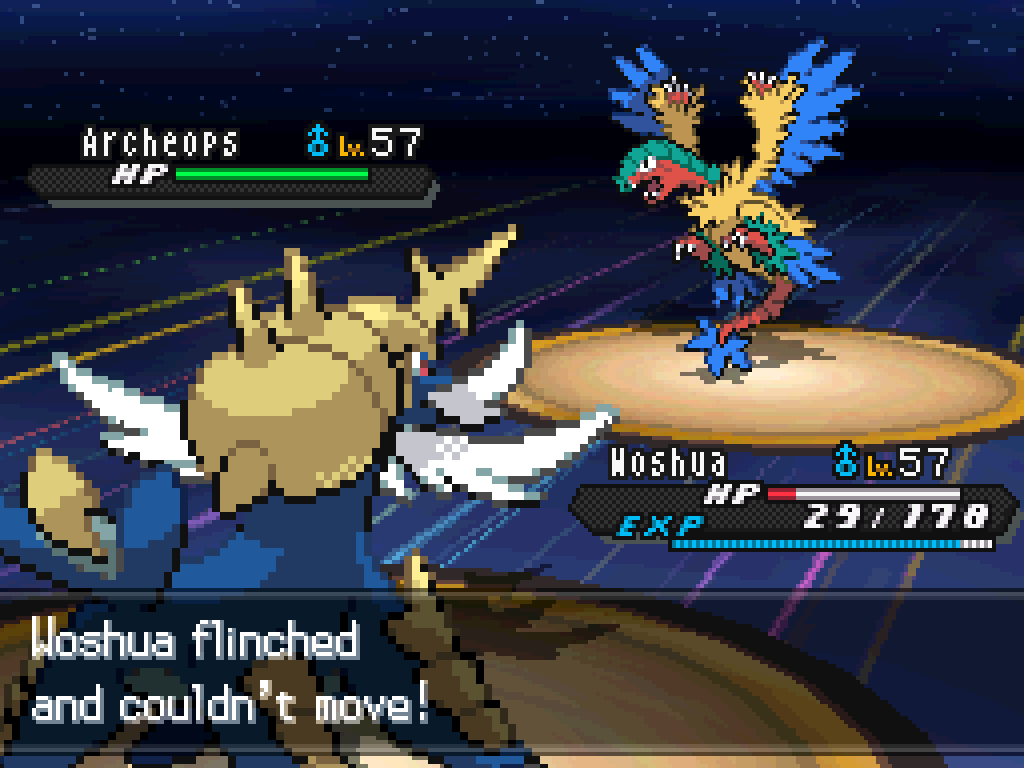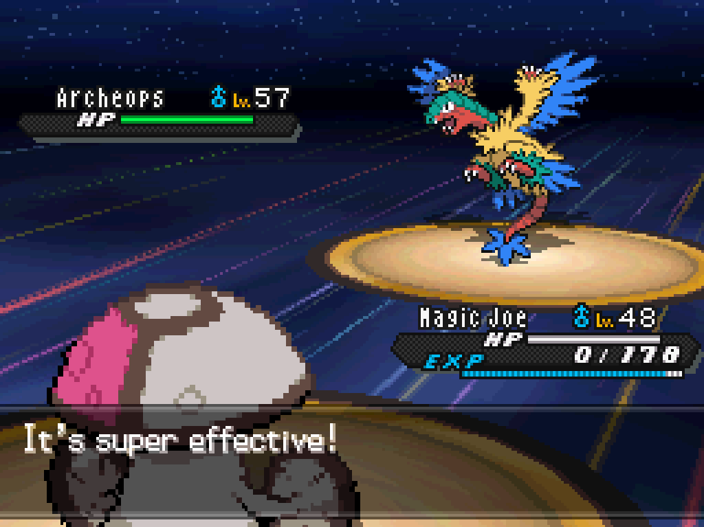 Archeops was one Pokémon I actually wanted to use Woshua against; his Ice Beam should make this straightforward.  Archeops has extremely powerful physical attacks, though; it’s not over ‘til it’s over.