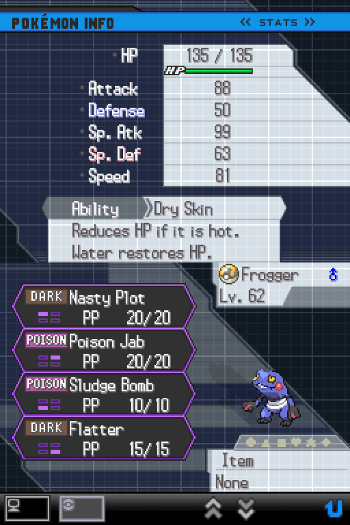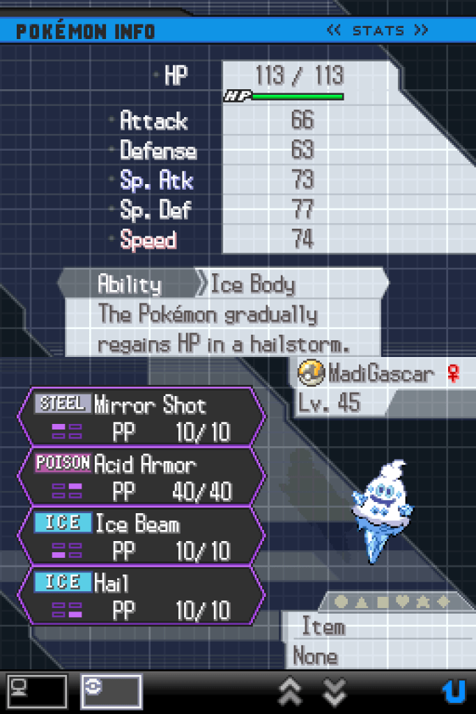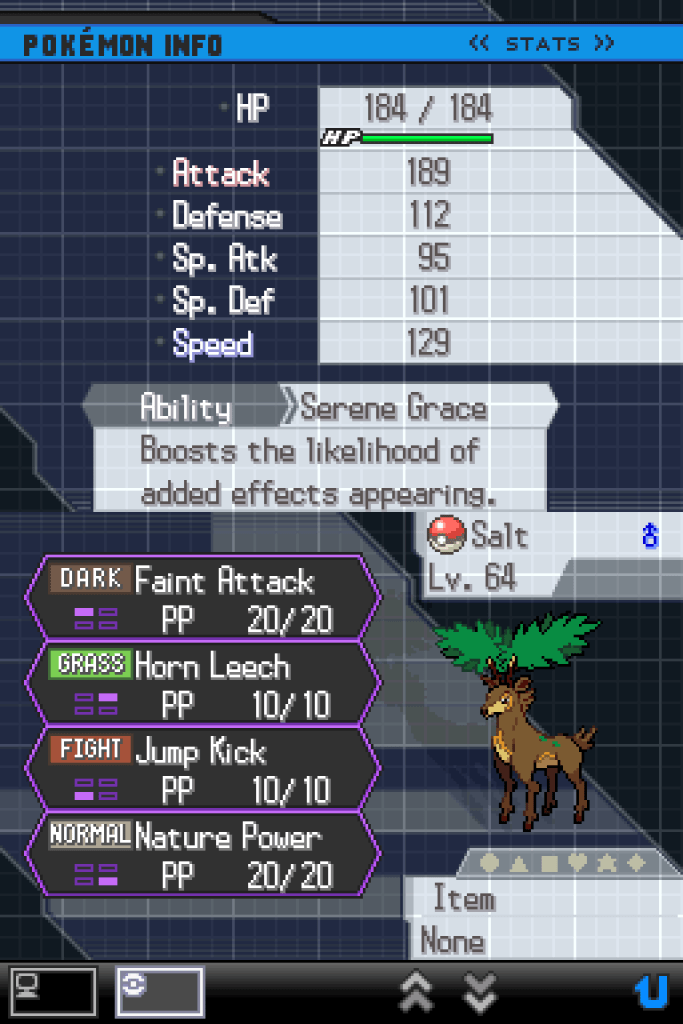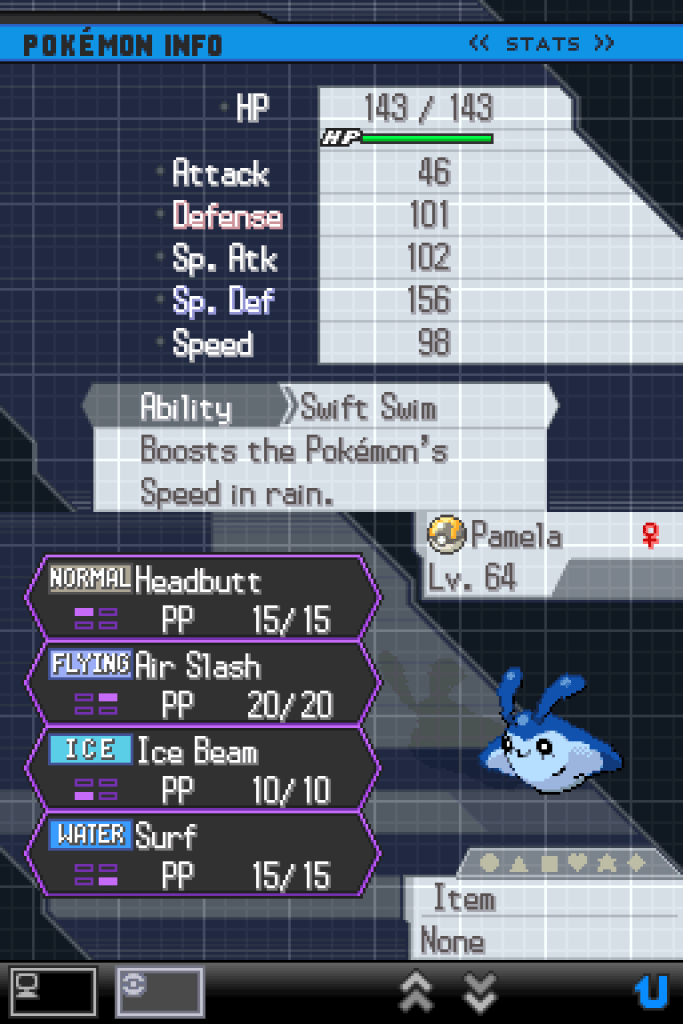 I’ve bested my own creation and conquered the Black 2 Kingslocke run, but what of our heroes? There are a lot of them, after all; the point of the Kingslocke is very much that you never know who you’re going to end up relying on. Even those Pokémon who never actually saw battle or got to contribute anything are part of this story; let’s hear from them first.