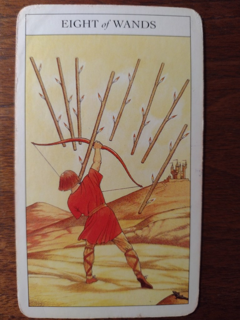Eight of Wands: If you have any boxed Pokémon that have not levelled since they were caught, choose one and make it compulsory and a Champion as long as this card remains in play.