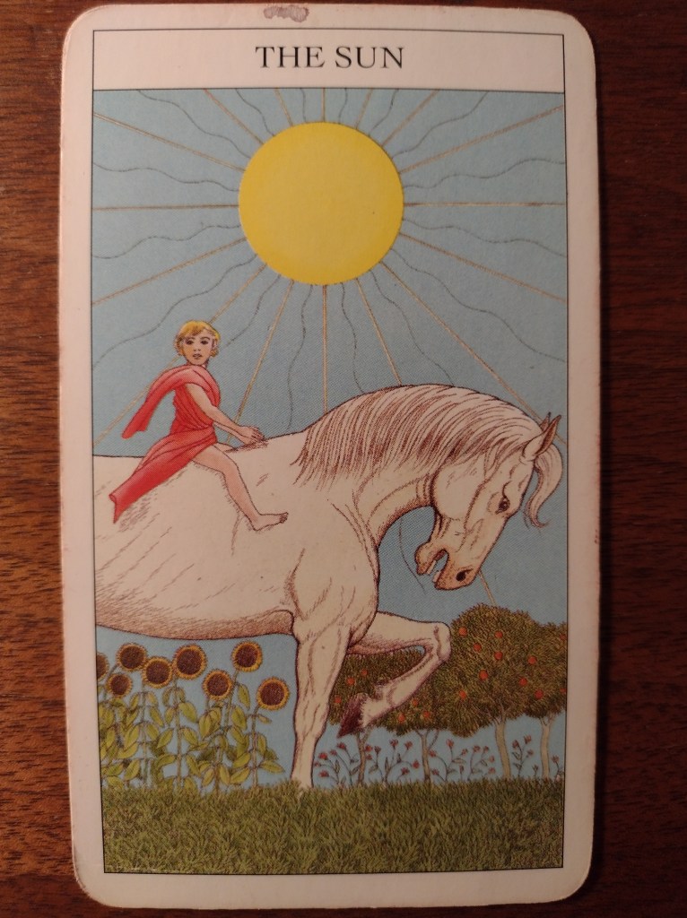The Sun: Immediate: All ongoing card effects that can ban a specific Pokémon (Eight/Mate, Knight after a failed Challenge, the Tower, version 6 of the Wheel of Fortune, any Ten/Rule Card that makes a specific Pokémon unusable, or any card modified by a Ten/Rule Card to make a specific Pokémon unusable) are revoked, allowing you to use those Pokémon again. Nine/Snake Eyes, Death and the Hanged Man are not revoked and can petrify more Pokémon in the future; however, all of your currently petrified Pokémon are freed (overriding the effect of Death).