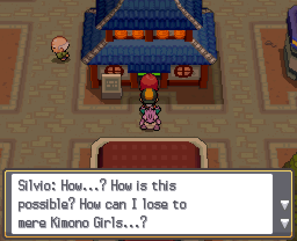 Apparently This Douchebag was here to challenge the Kimono Girls as well – and it didn’t go well. Was he invited? Did they think he might be the one to bring back the legendary Pokémon? Or was he just kinda… waiting there, on the off chance they came back?