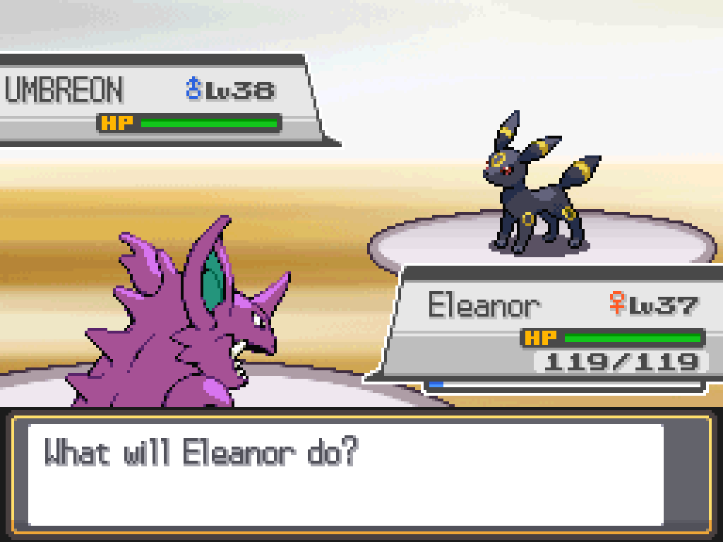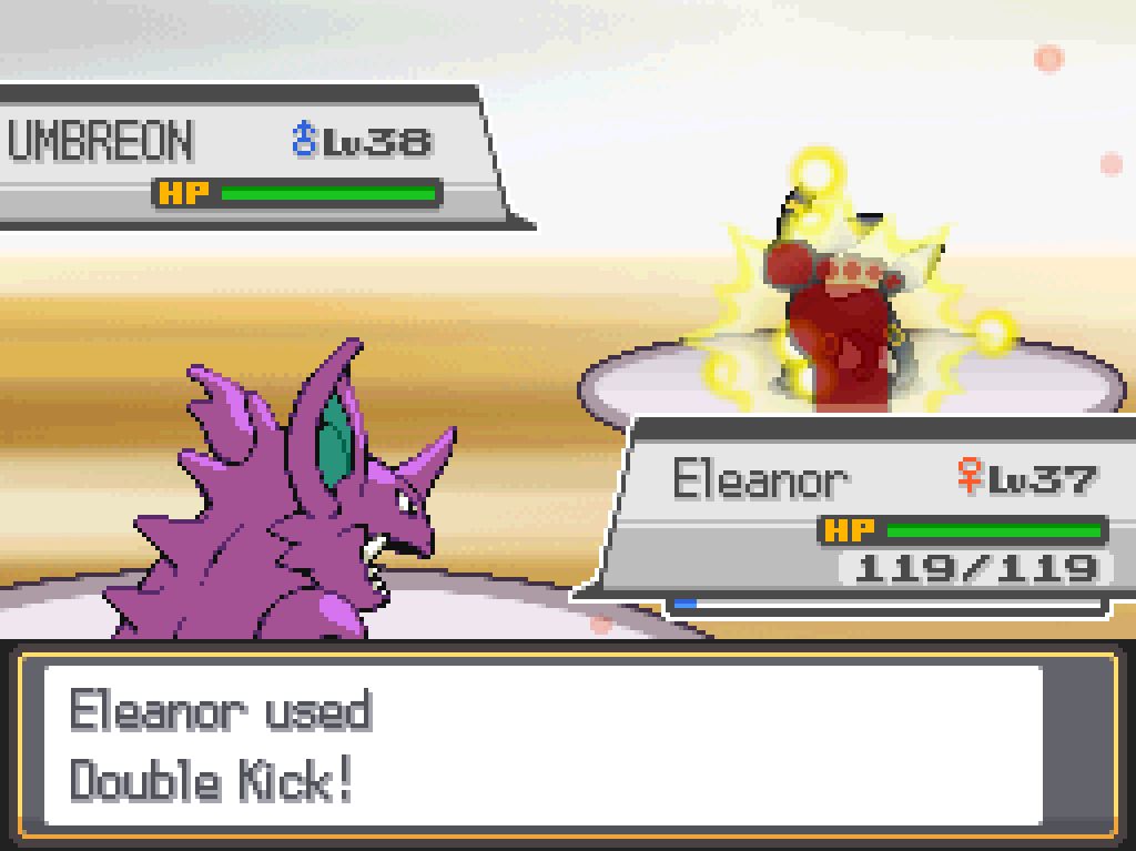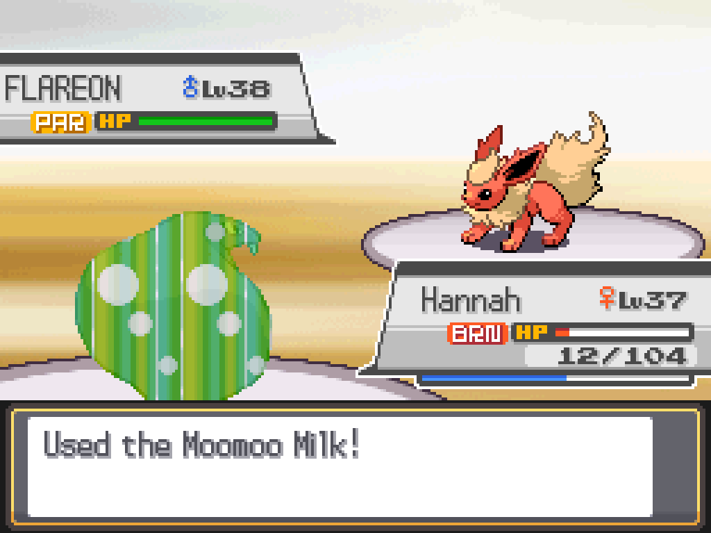 Actually, the young Vicereine is really holding her own here; I can’t heal her because she isn’t a Champion, unfortunately, but this is impressive. It helps that Fire Blast and Sacred Fire only have 5 PP each; I think Ho-oh’s run dry (fortunately, Extrasensory for some reason has 30 PP, so I’m not in danger of it Struggling itself to death for a while yet).