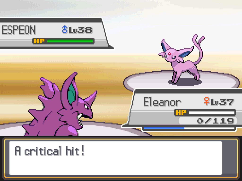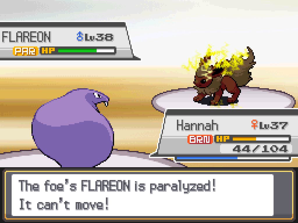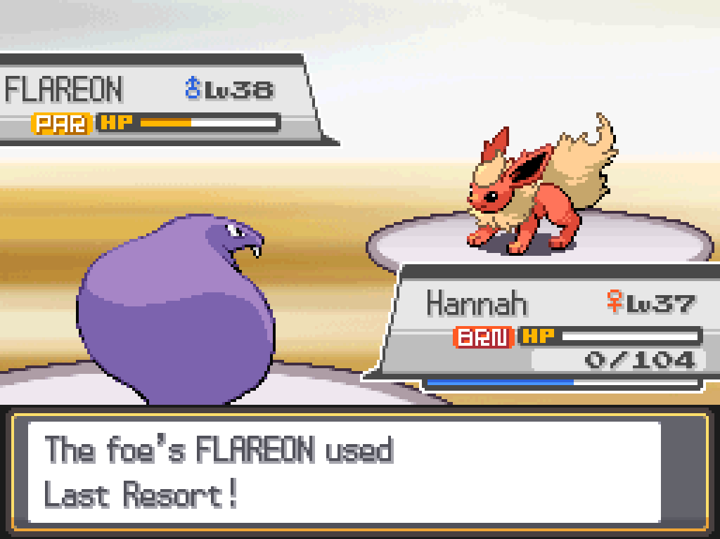 Ugh, I really would have been happy if Hannah had just been able to land Glare and Intimidate; I didn’t even need her to do any damage. Oh well; I guess this isn’t working.