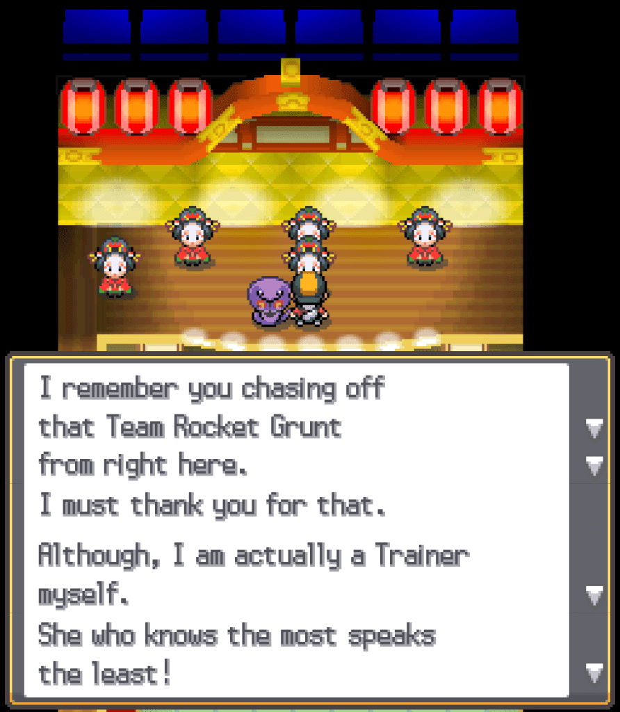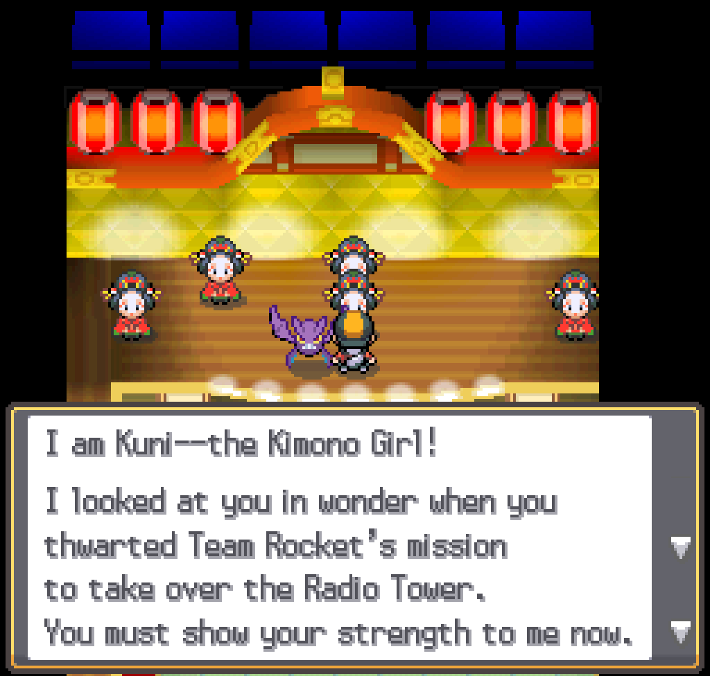 The Kimono Girls also have business with us, so it’s off to Ecruteak City!