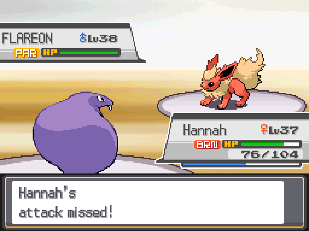Oh, come on; that’s two misses with Mud Bomb in a row; throw me a bone here, game.