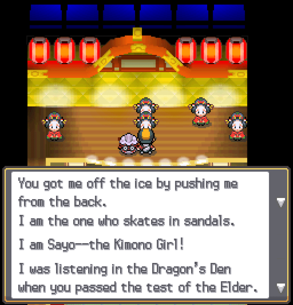 It kinda sounds like these Kimono Girls are not just masterful dancers and elite Pokémon trainers, but extremely stealthy secret agents. They’ve been observing our progress in some pretty obscure places without being discovered by Team Rocket or the dragon tamers.