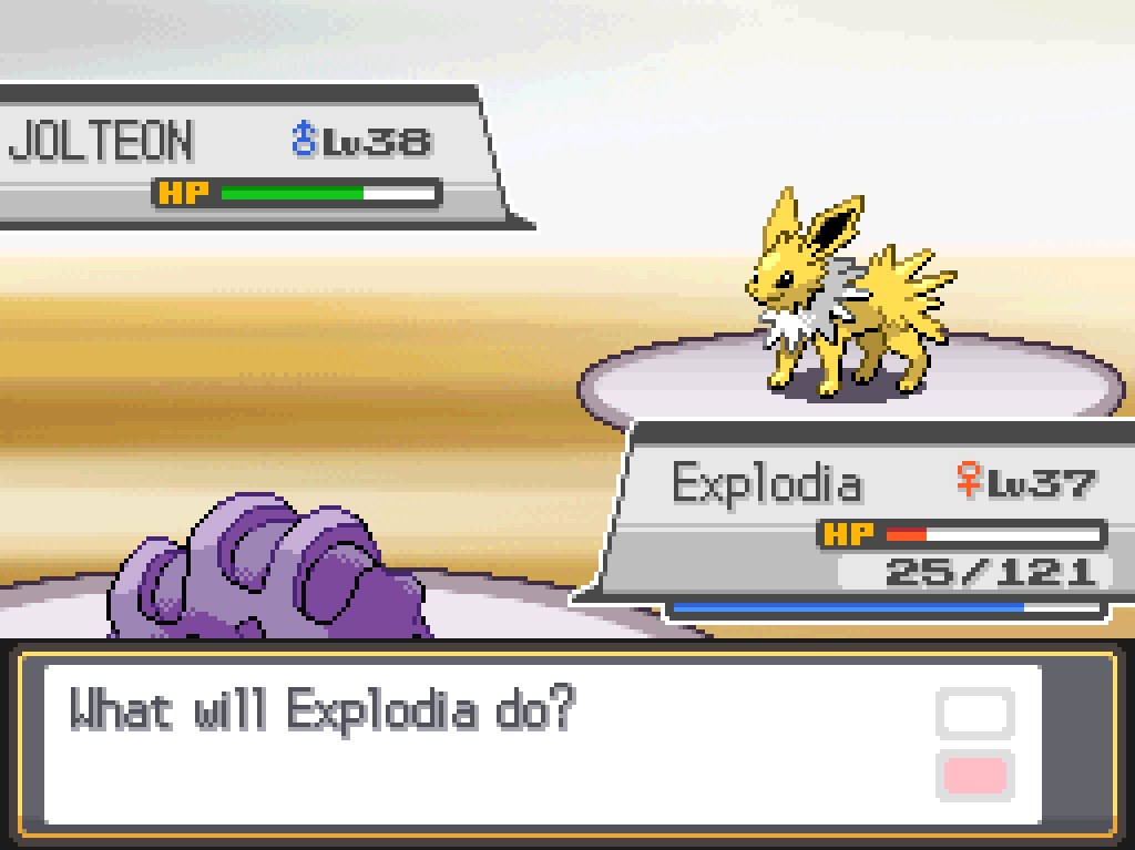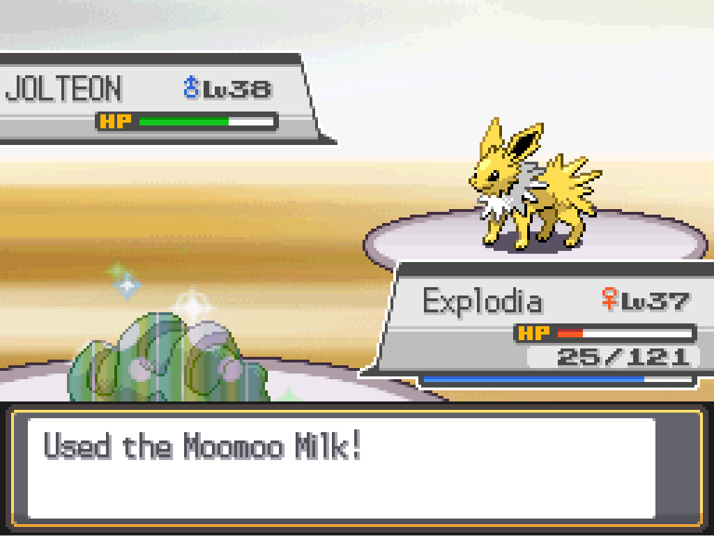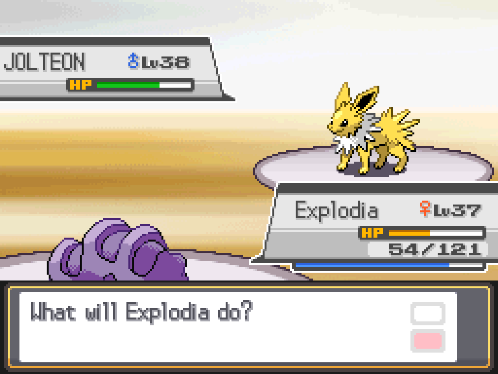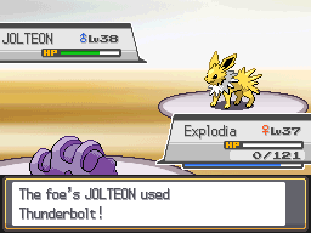 I don’t like Doc or Nadja’s odds against Jolteon, so I’m going to try healing Explodia.