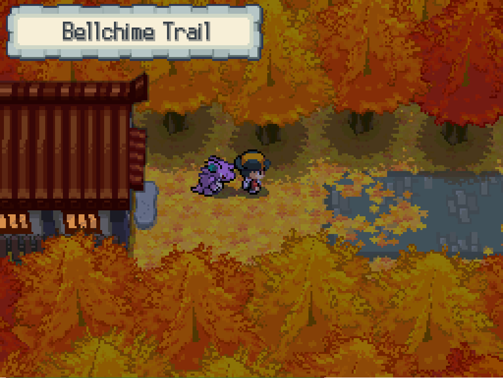 Here we are… the Bell Tower. In the original Gold and Silver, this building was known as the Tin Tower. According to one of the sages who guards the Tin Tower in Crystal, its counterpart, the Burned Tower, was once known as the Brass Tower and was the home of “an immense, silver-coloured Pokémon” – presumably Lugia; the other tower belonged to Ho-oh. Both Pokémon left Ecruteak City forever when the Brass Tower was destroyed.
