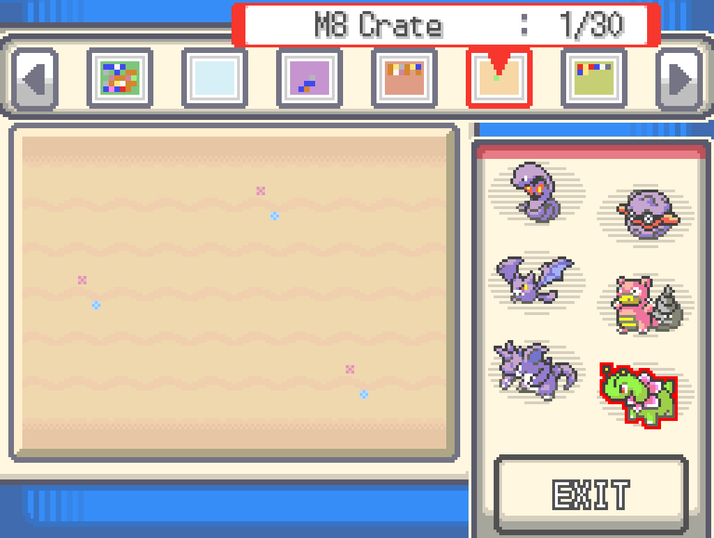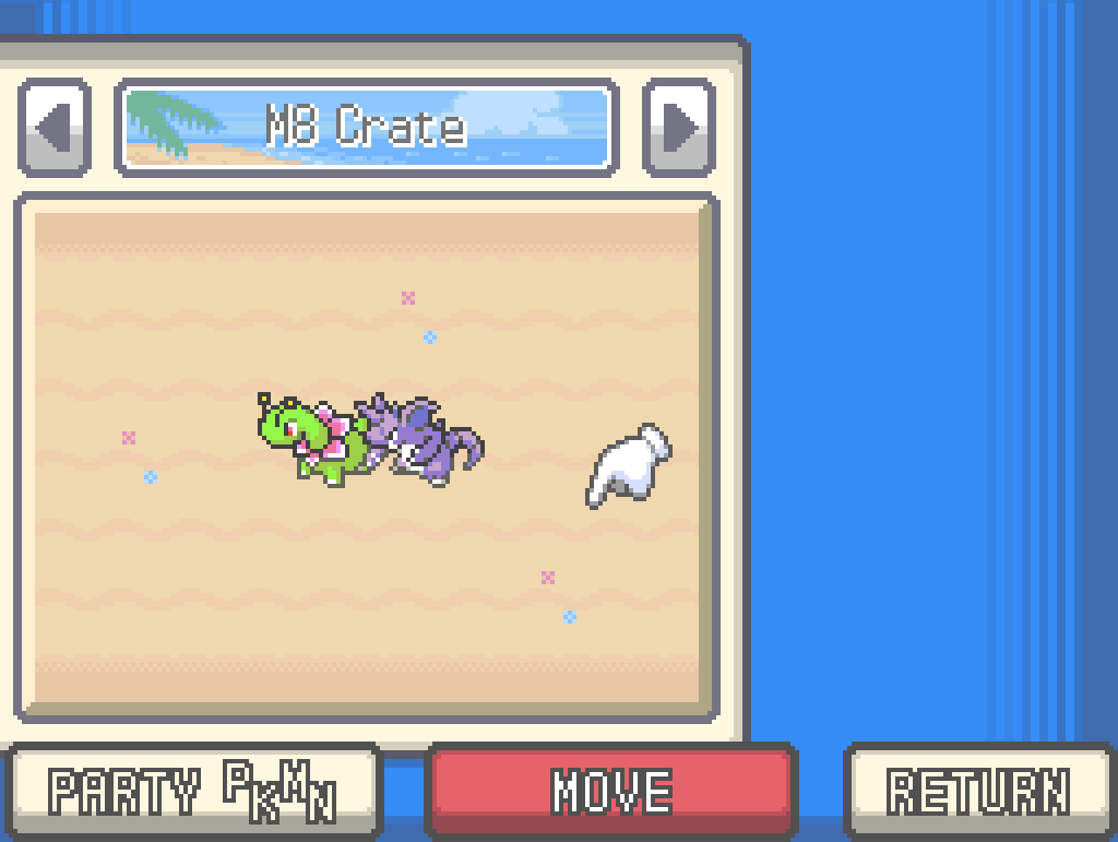 Hmm… this is actually kinda neat. There’s only one Pokémon in my party who can be banned. Four of my Pokémon are Champions, and Zill is protected by the King of Pentacles, so only one can go in the Mate Crate.