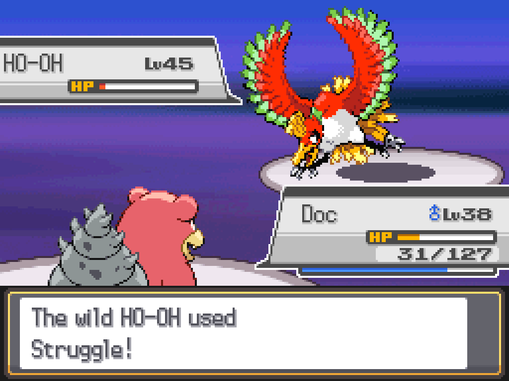 And so, Ho-oh decided that it would rather fight until it plummeted out of the sky from exhaustion than ever work with a trainer as unworthy as me.
