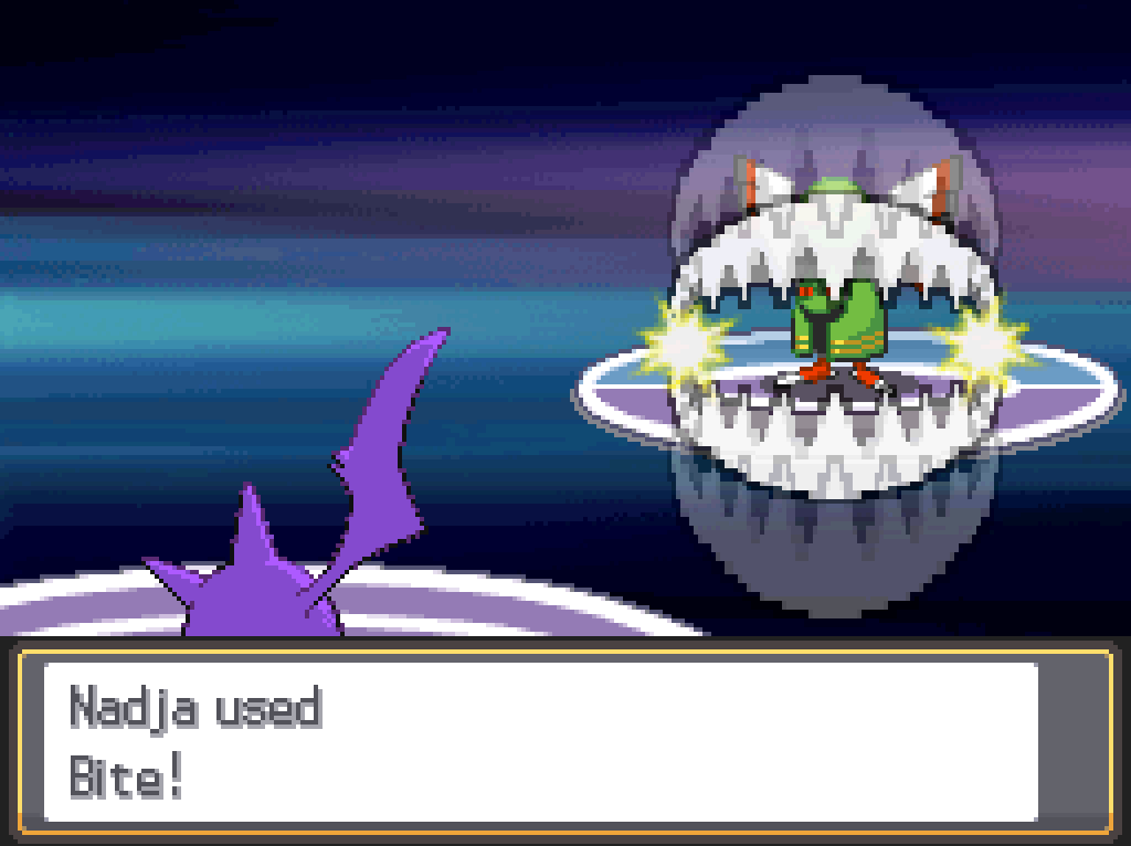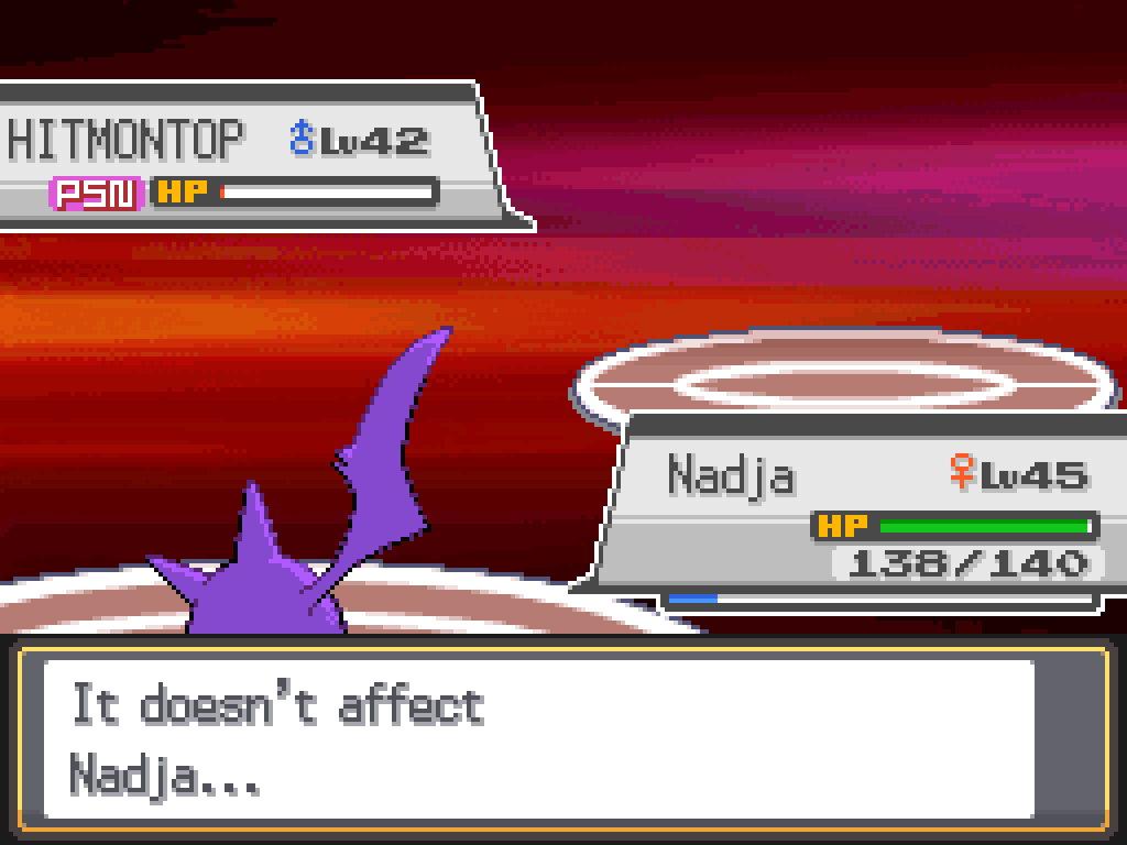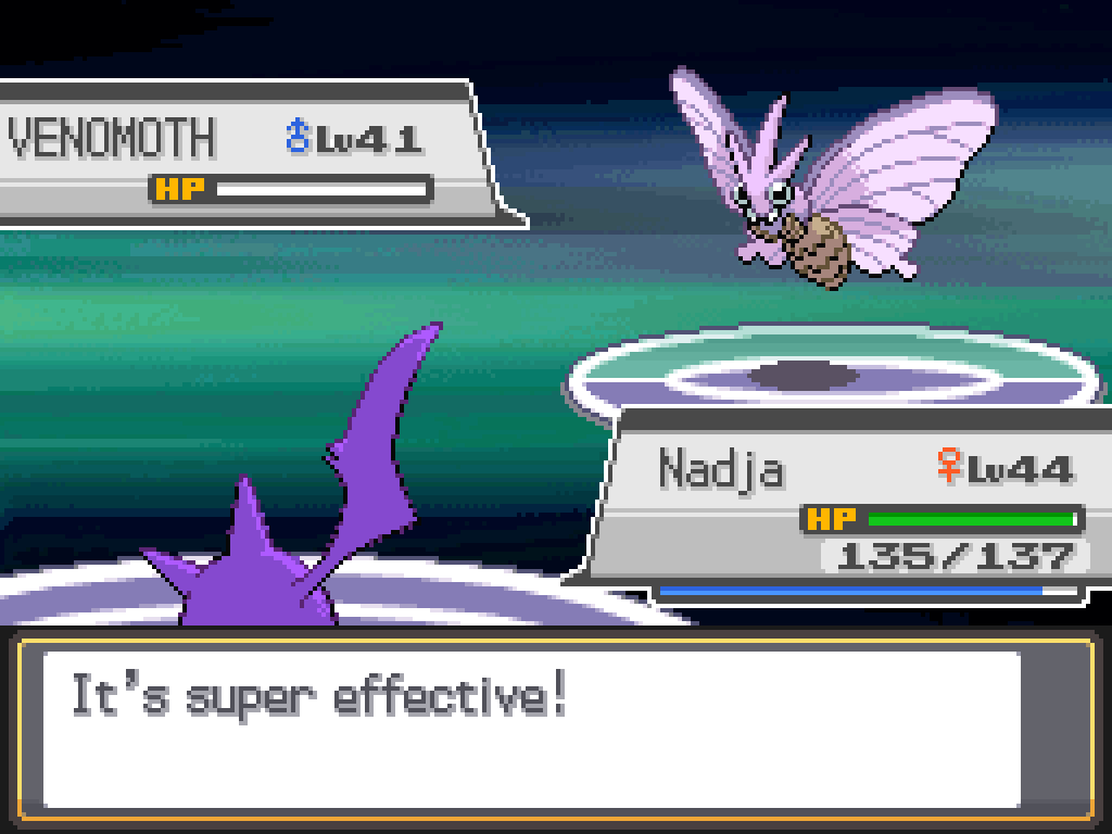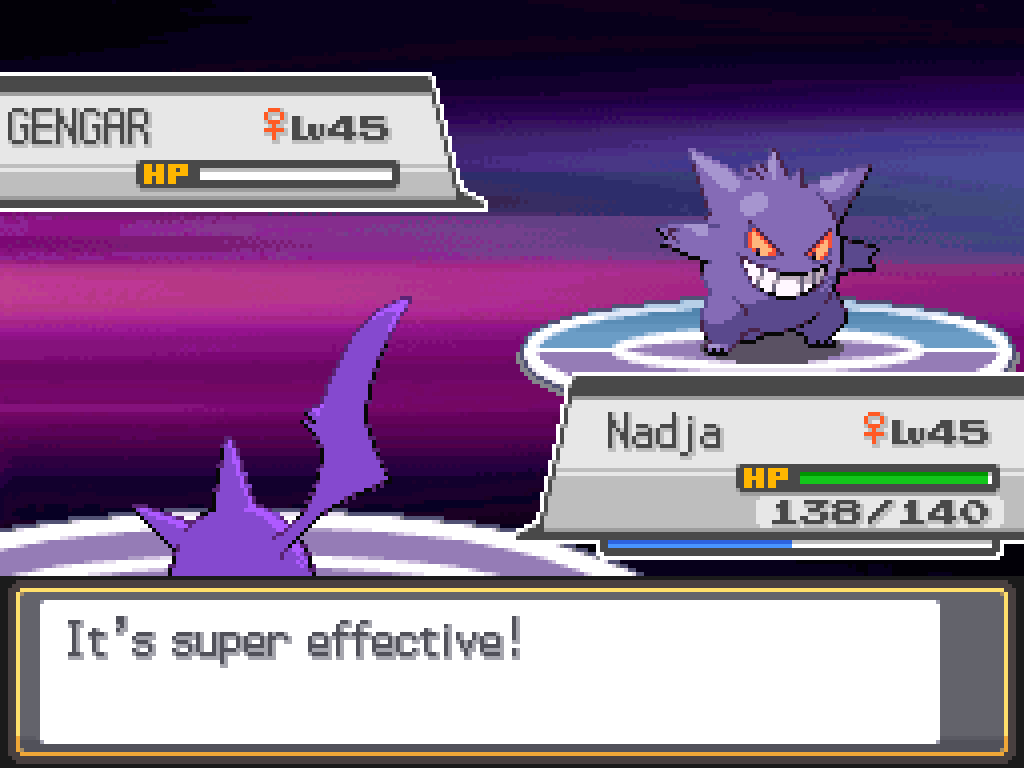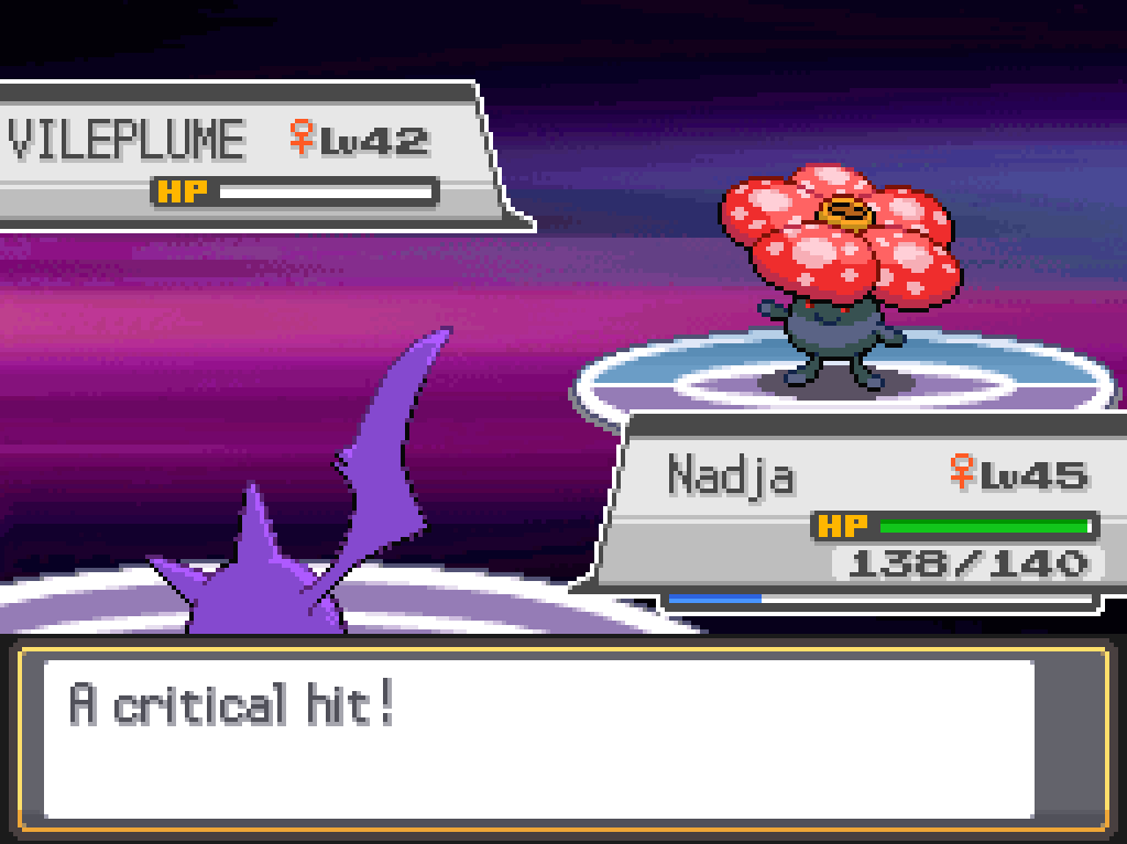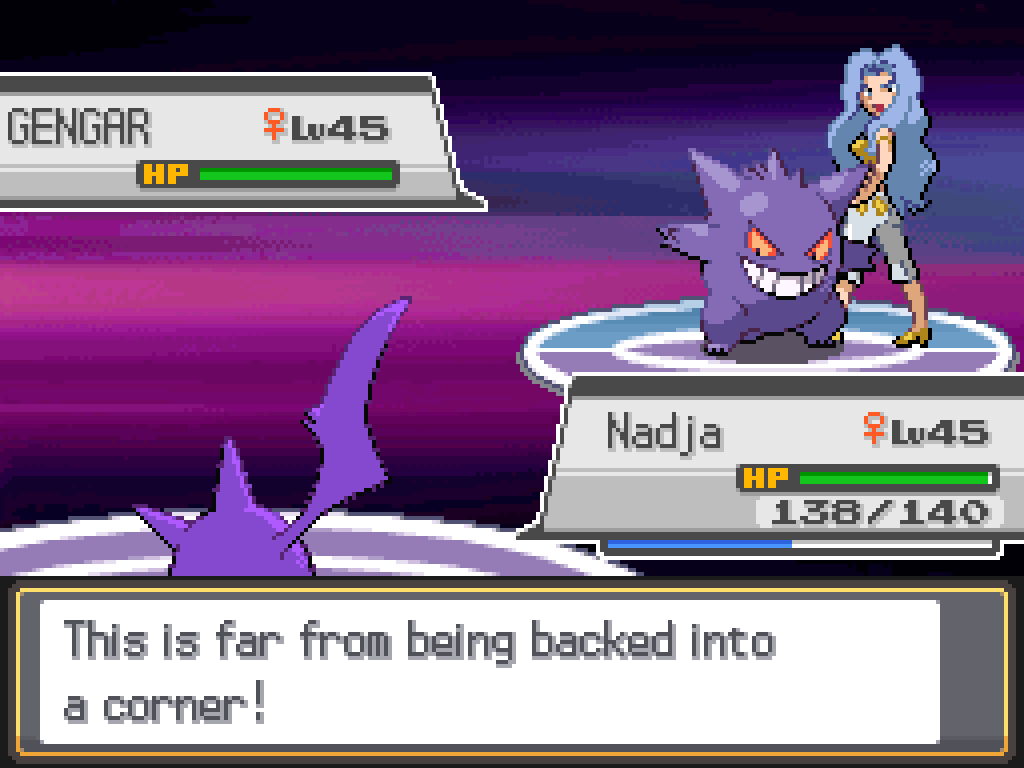 There aren’t enough Dark Pokémon in generation II to give Karen a full team, so instead she has the nocturnal Vileplume. No problem for Nadja.