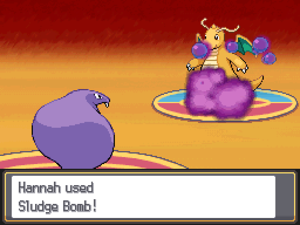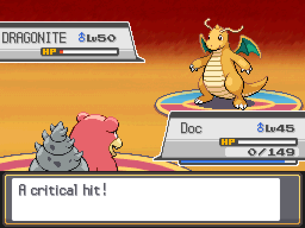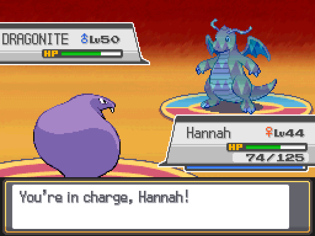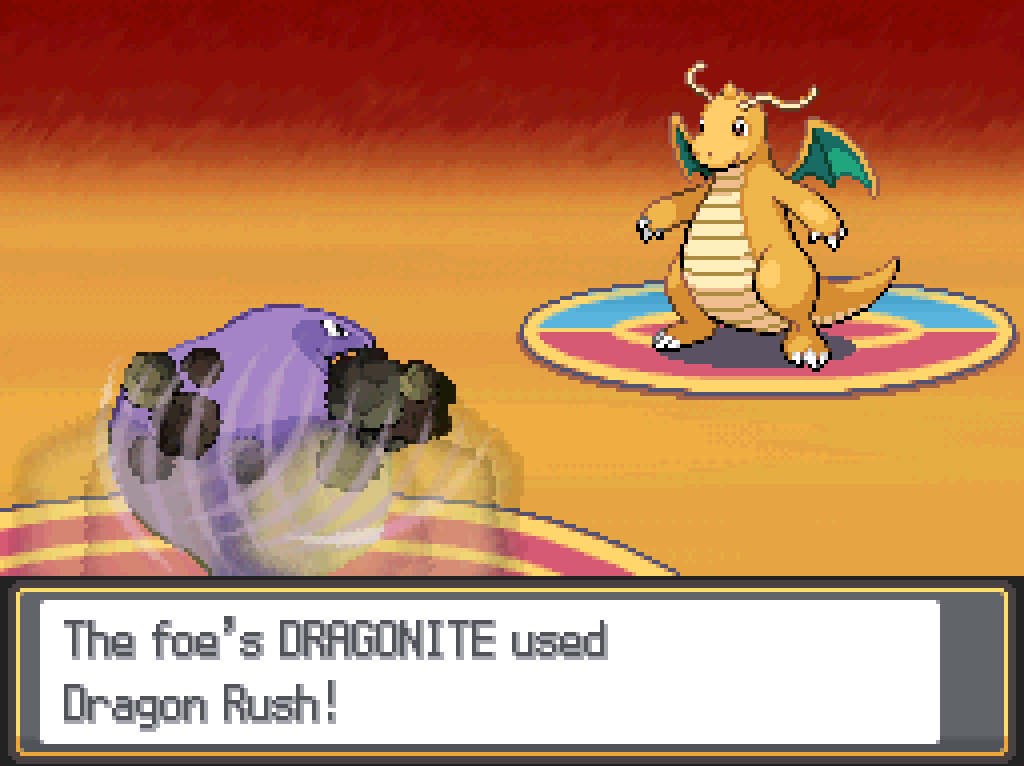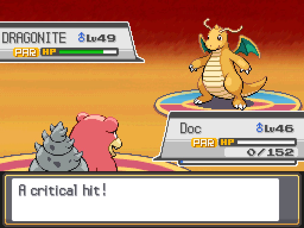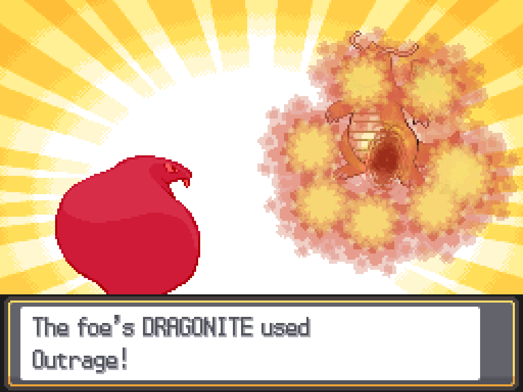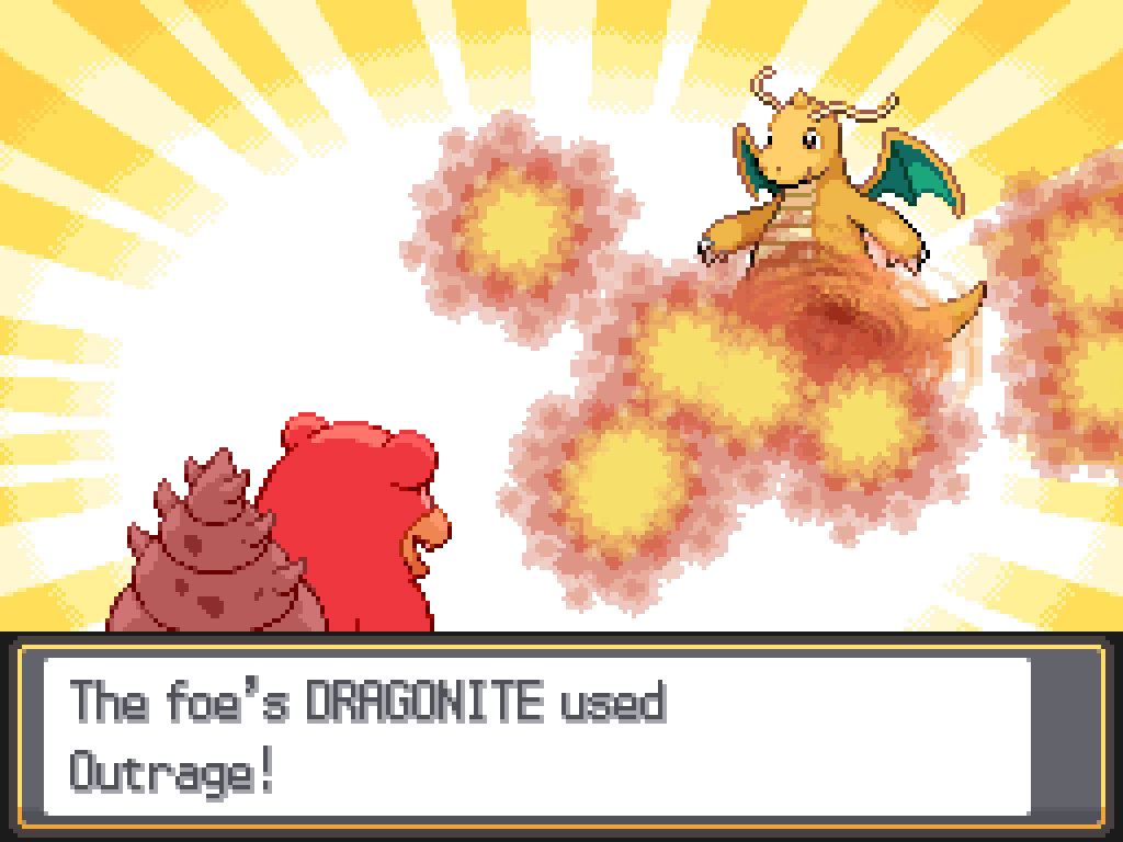 oh, $#!t, it’s this one; I switched to Explodia because I thought Lance would open with one of his lower-level Dragonite, but it’s the big one. Better switch out before…