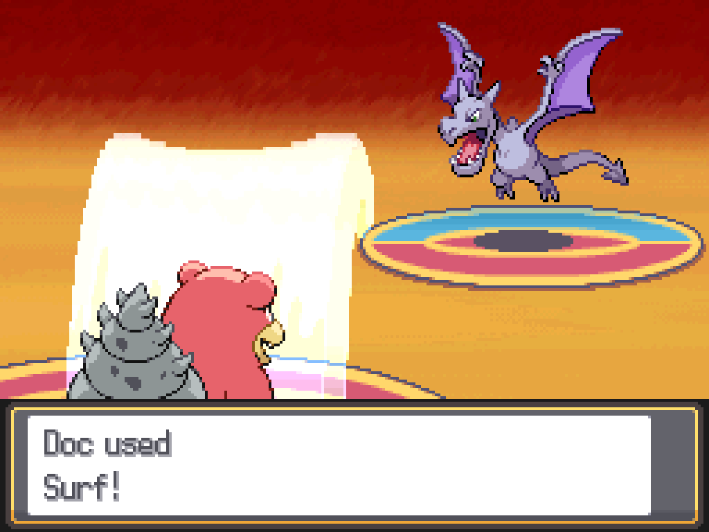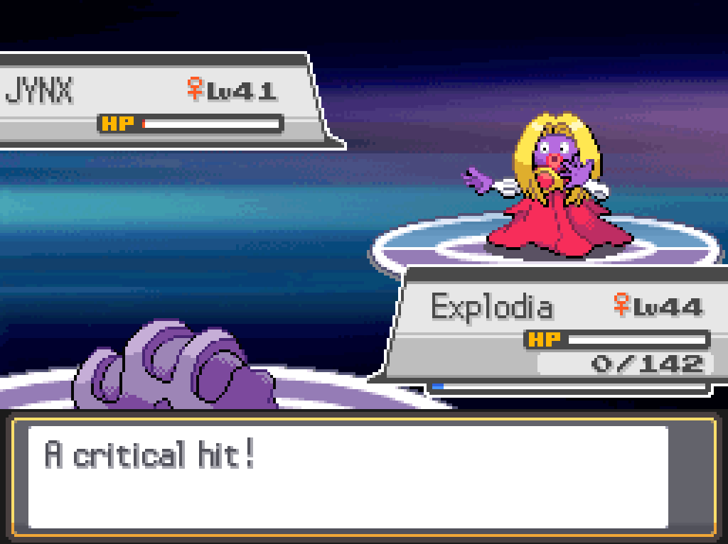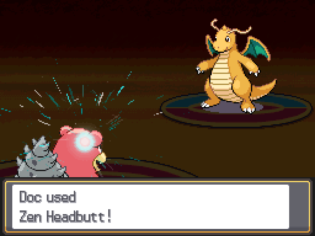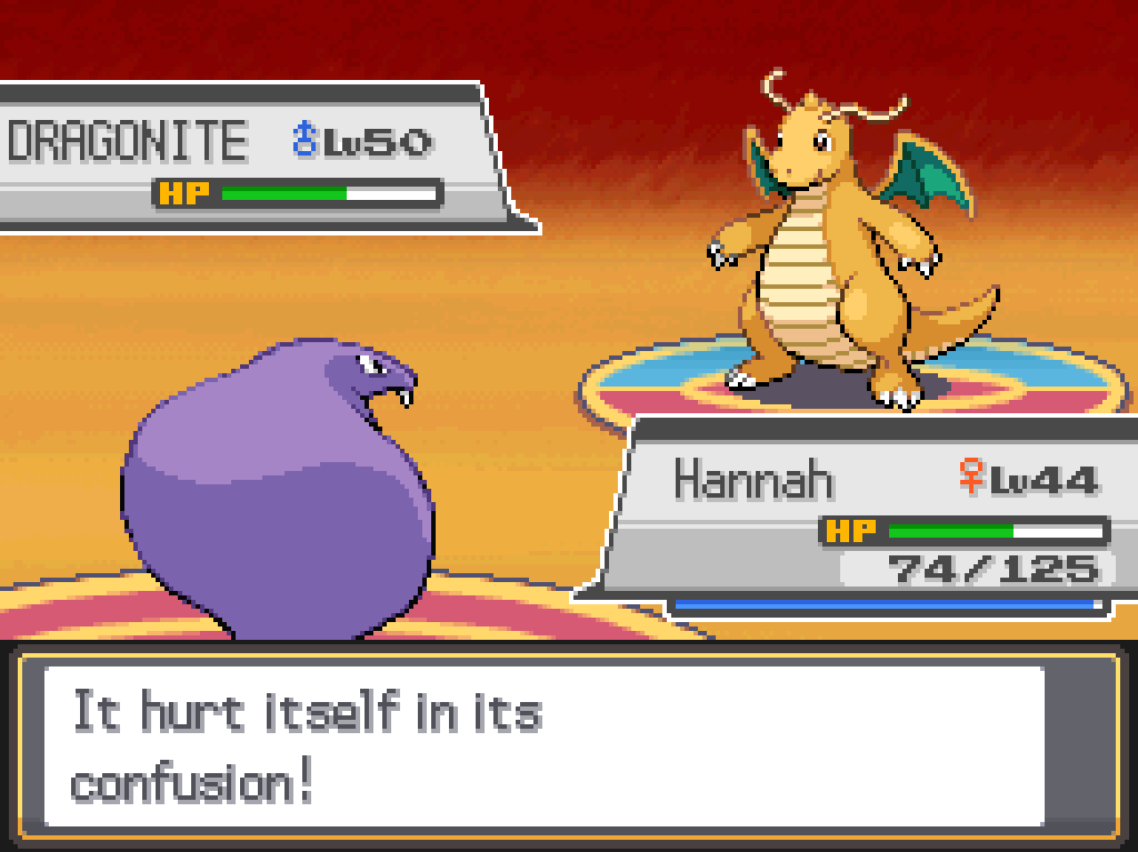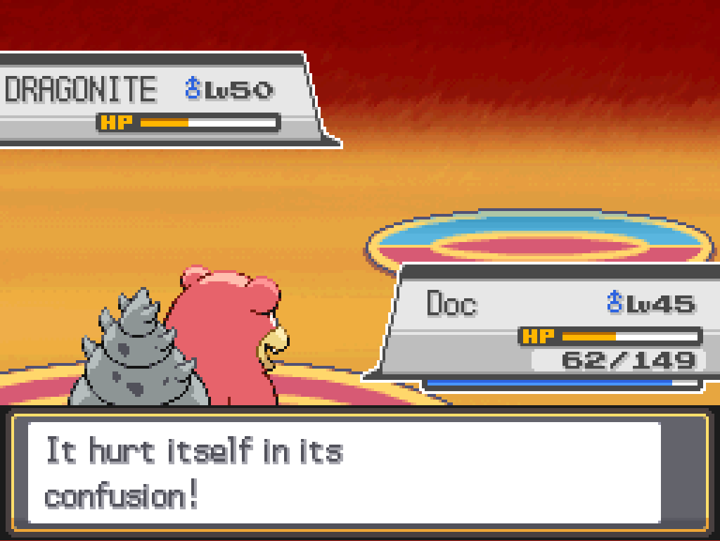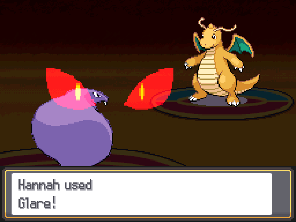 oh, $#!t, it’s this one; I switched to Explodia because I thought Lance would open with one of his lower-level Dragonite, but it’s the big one. Better switch out before…