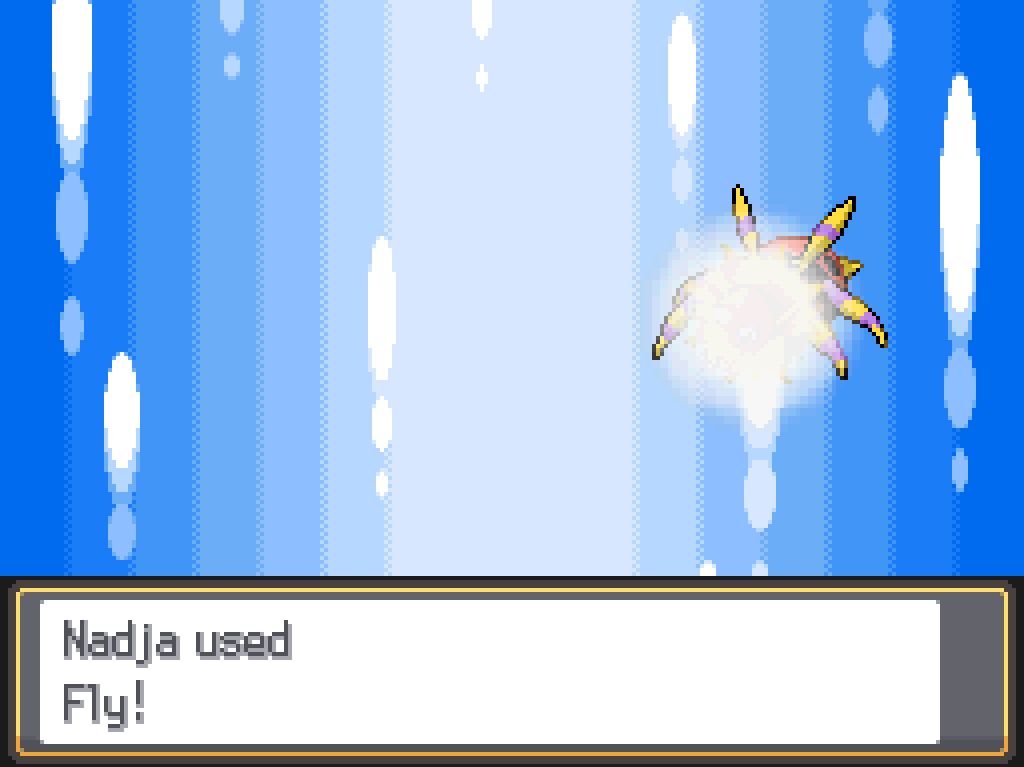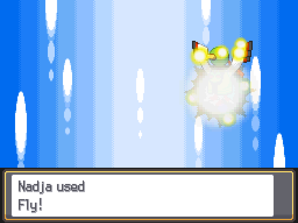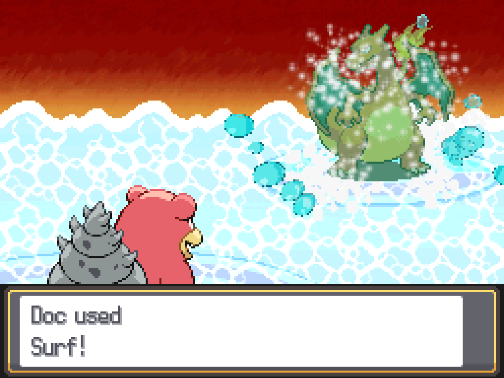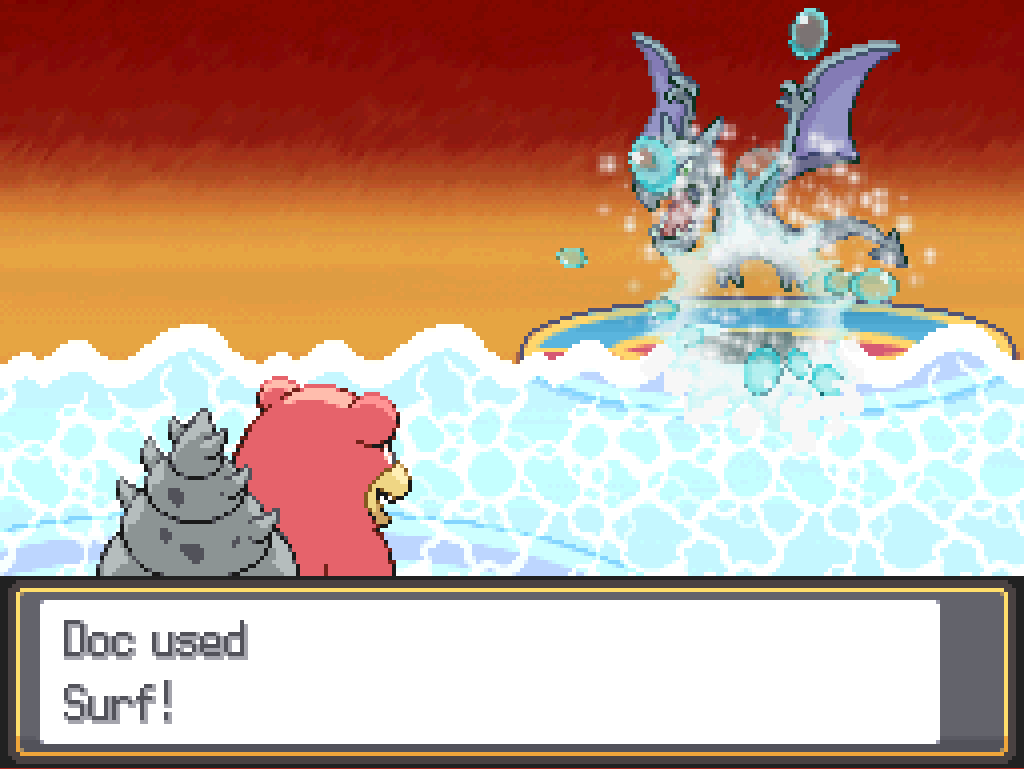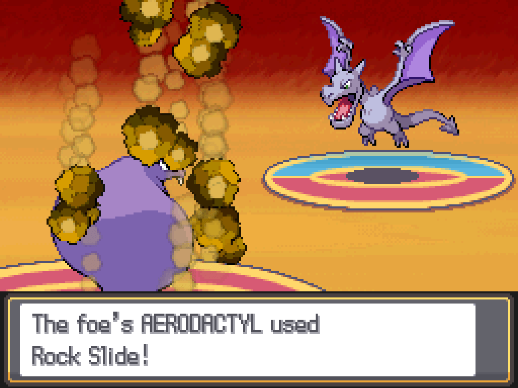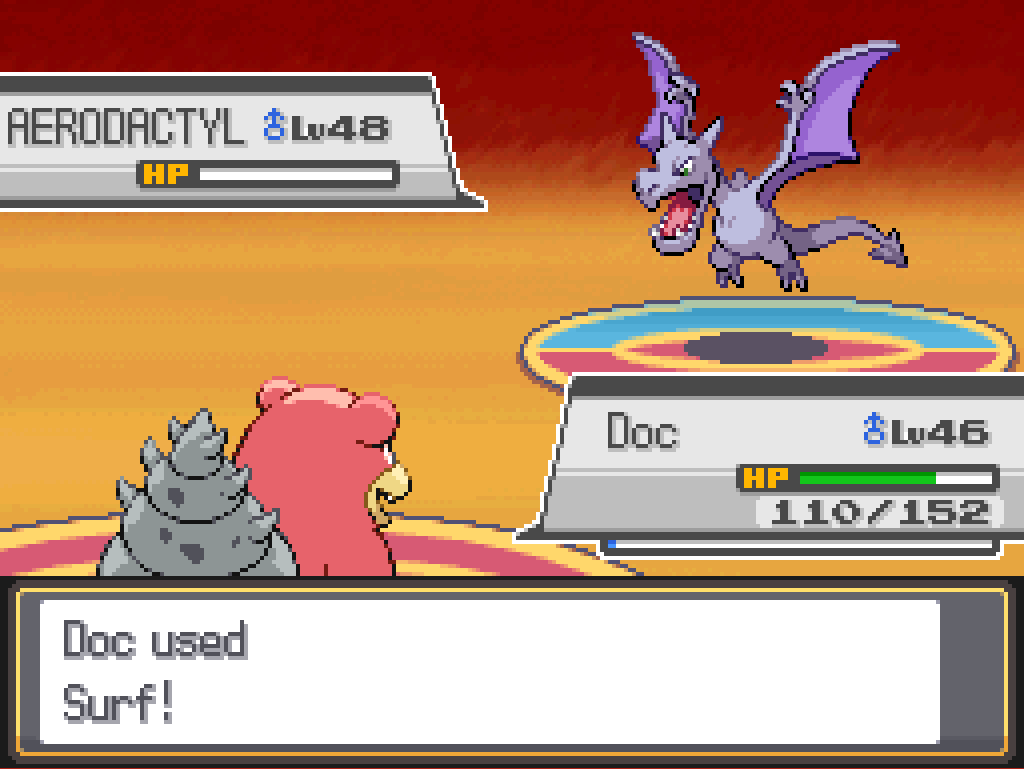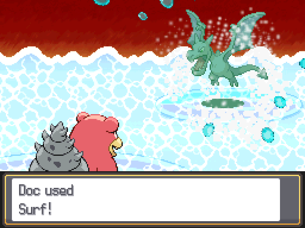 oh, $#!t, it’s this one; I switched to Explodia because I thought Lance would open with one of his lower-level Dragonite, but it’s the big one. Better switch out before…