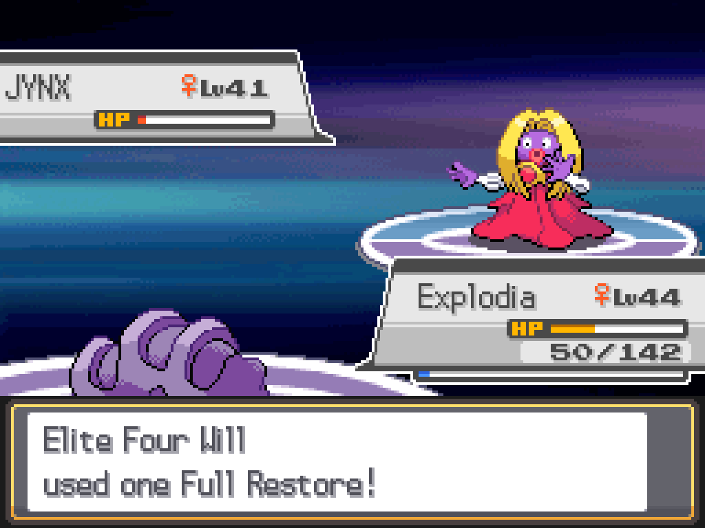 For the record, with the High Priestess in play I would absolutely be completely fµ¢£ed here without my four Champions to spit in her face. I’m wondering if she should have a special exception for Elite Four challenges – like, maybe you still can’t heal during battles, but you’re allowed to use a limited number of healing items after each fight.
