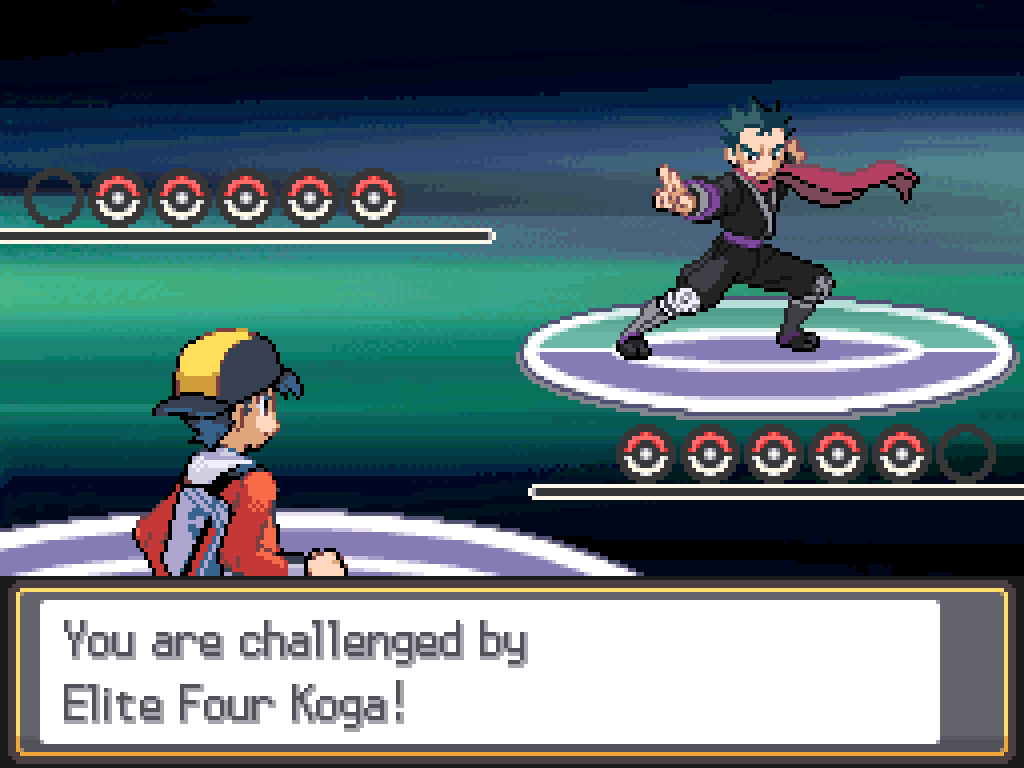 Depending on your exact loadout, and I think especially in original-recipe Gold and Silver, Koga can actually be easier than Will – partly because most Dark and Steel Pokémon are still pretty hard to come by at this stage, and partly because Will’s strategy is just to hammer you with STAB Psychic while Koga’s is to do a bunch of sneaky stuff that honestly isn’t as reliable.