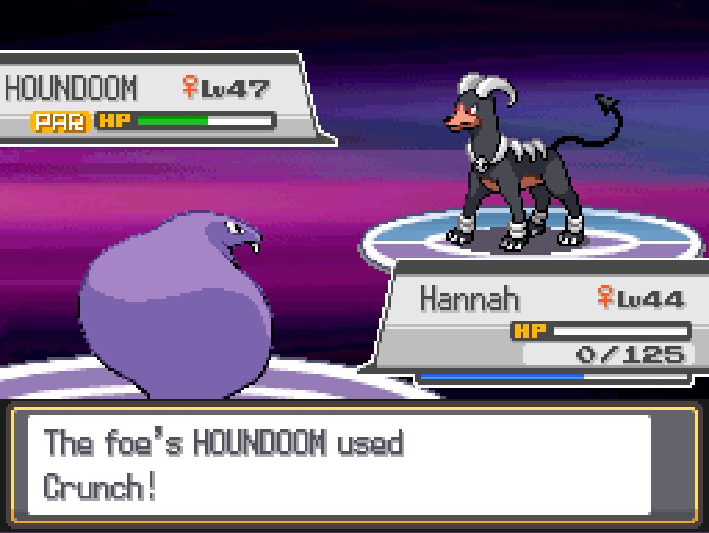 …Hannah hangs on long enough to do some serious damage anyway, and with Houndoom paralysed…