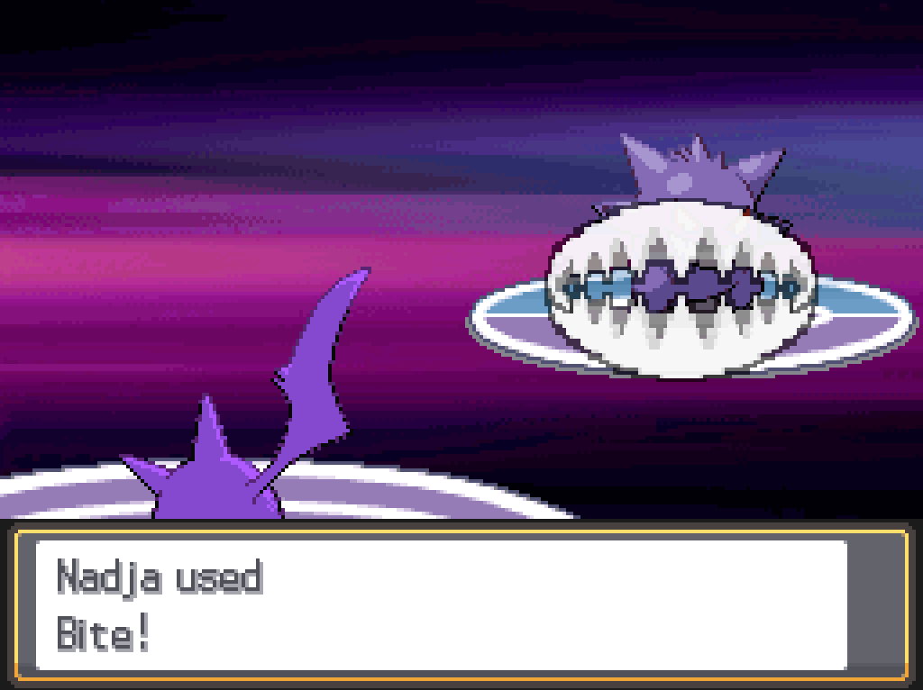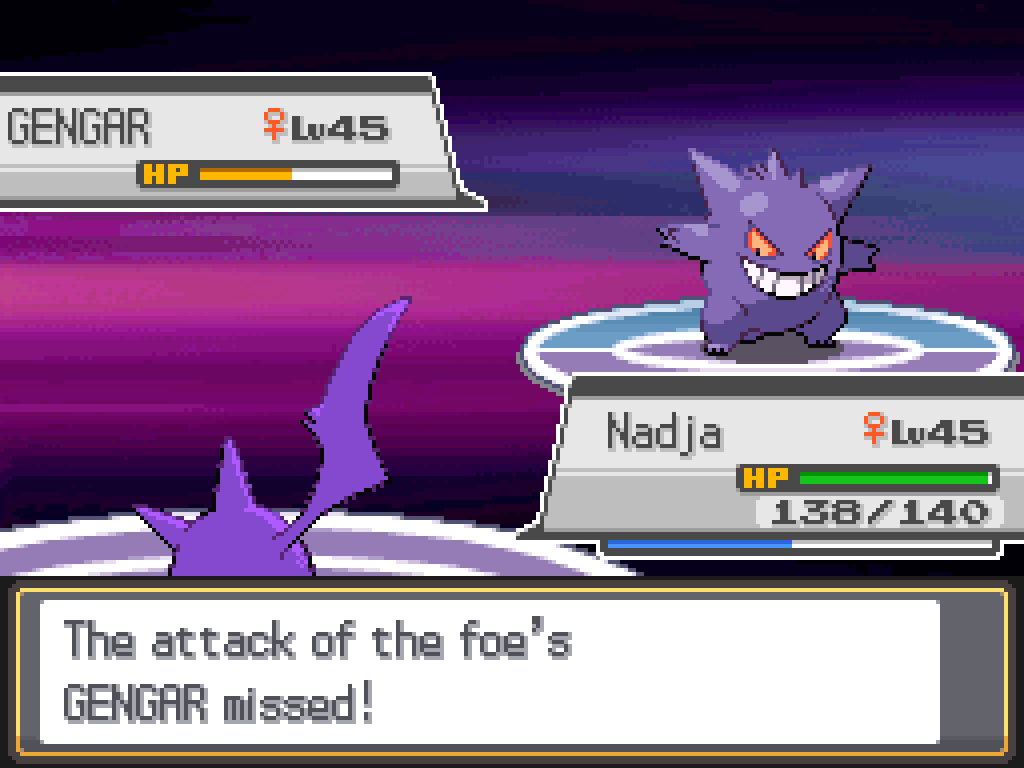 Karen’s Gengar has one of the weirdest movesets I’ve ever seen – no Shadow Ball, despite being more than a high enough level to learn it naturally; for damage it has Focus Blast and Lick. And Focus Blast… is not good for fighting a Crobat.