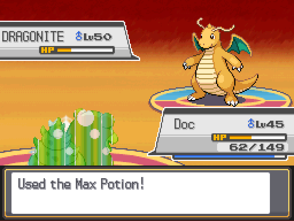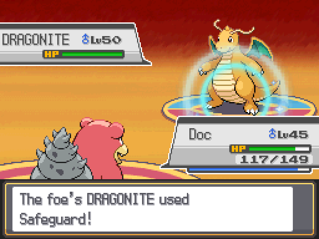 Since Dragonite has now taken an Intimidate, I start to feel pretty confident that Doc can sit and tank a few hits while I administer some healing to the rest of my royal guard.