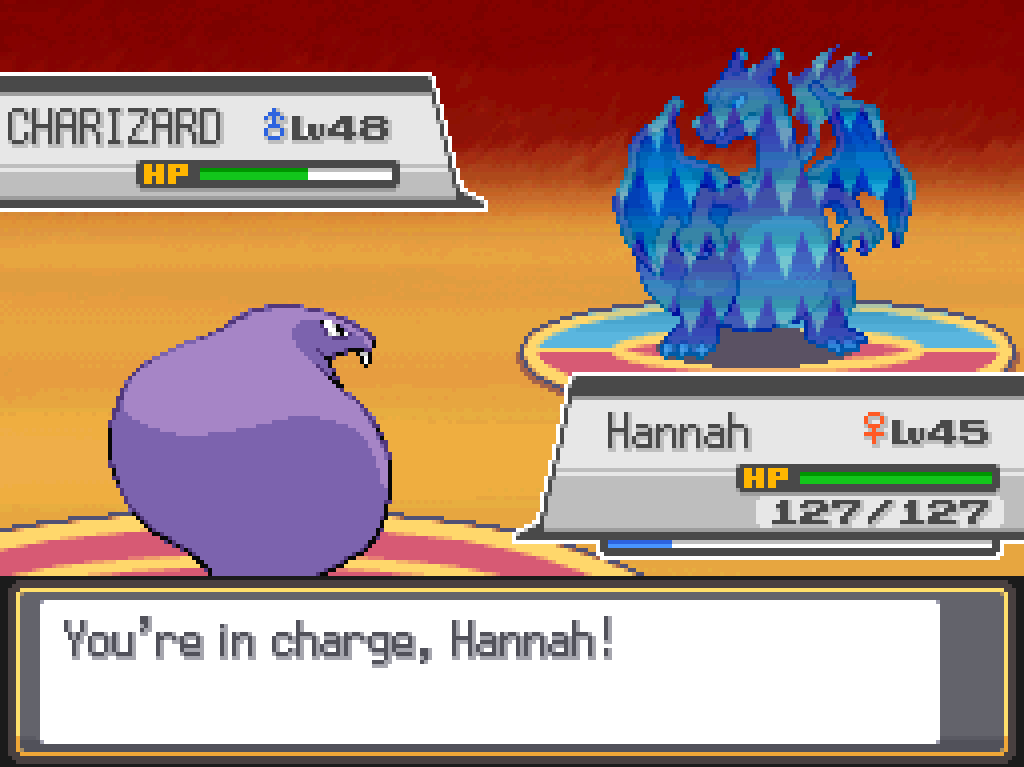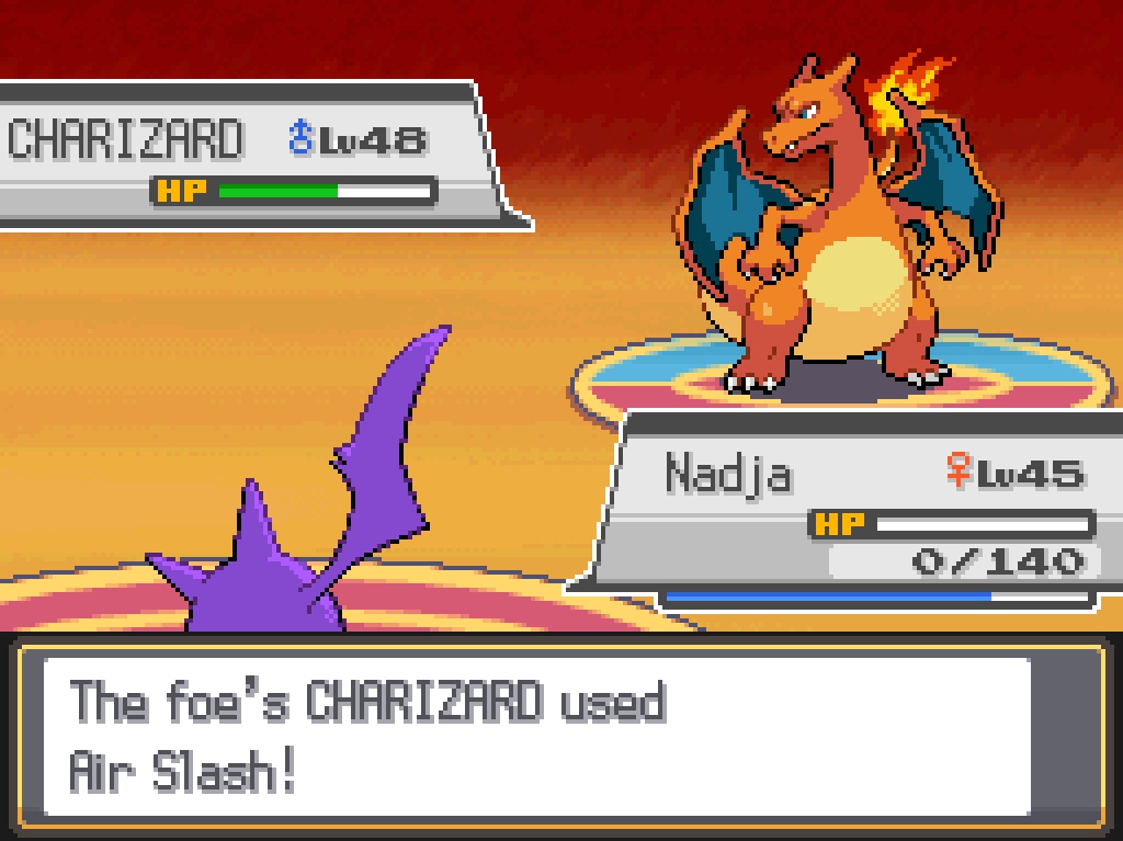 I don’t feel great about taking on Charizard without Doc, but I owe it to Nadja to let her give it a shot. If I can land a deadly poison with Poison Fang, she might be able to stall it out with Roost and Fly.