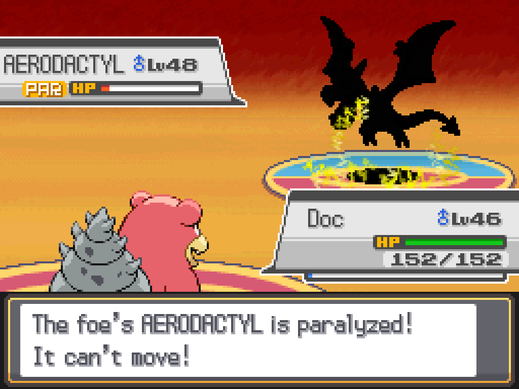 Aerodactyl’s another one that will be tricky to handle without Doc, but once again we can just tag it with Glare, revive Doc, and…