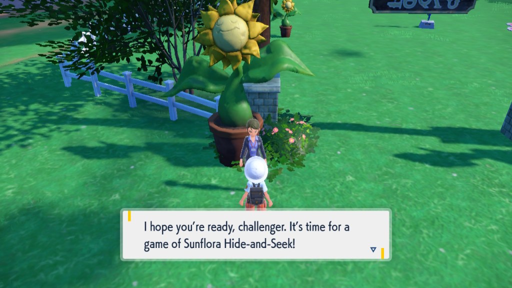 As is gym leader tradition, Brassius has a silly little test for us to complete before we can actually challenge him.  In this case, we have to find ten Sunflora – Artazon’s mascot Pokémon – hiding around the town.