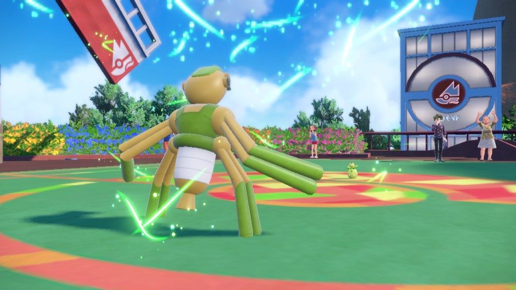 We saw this before the game came out, but I still think it’s worth drawing attention to – Paldea’s regional flagship mechanic of sparklification means that a gym leader or other type specialist can potentially have their strongest Pokémon be something completely different that sparklifies to their own type.  Brassius, for example, has a sparkly Grass-type Sudowoodo.  That’s a cool flavour choice (because Sudowoodo’s whole thing is mimicking plants), a cool strategic choice (because, even sparklified, Sudowoodo still has Rock attacks, which are very strong coverage moves against the major weaknesses of the Grass type), and a cool gameplay choice (because it introduces players to the kind of interesting things you can do with this mechanic).
